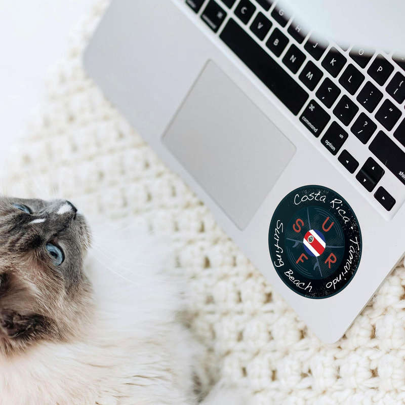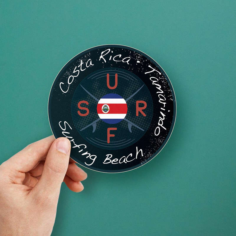 Capture the tropical essence of Tamarindo, Costa Rica, with this stylish surfing beach vinyl sticker. The round design showcases the Costa Rican flag, surfboards, and wave-inspired details, making it perfect for lovers of surf culture and tropical destinations. Crafted from high-quality vinyl, this decal is built to resist fading, weather, and wear for indoor and outdoor durability. Whether placed on a surfboard, laptop, car, or water bottle, it adheres seamlessly and removes cleanly without residue. Available in multiple size options, this bold and vibrant sticker is a must-have for travelers and surfers who want to celebrate the spirit of Costa Rica.