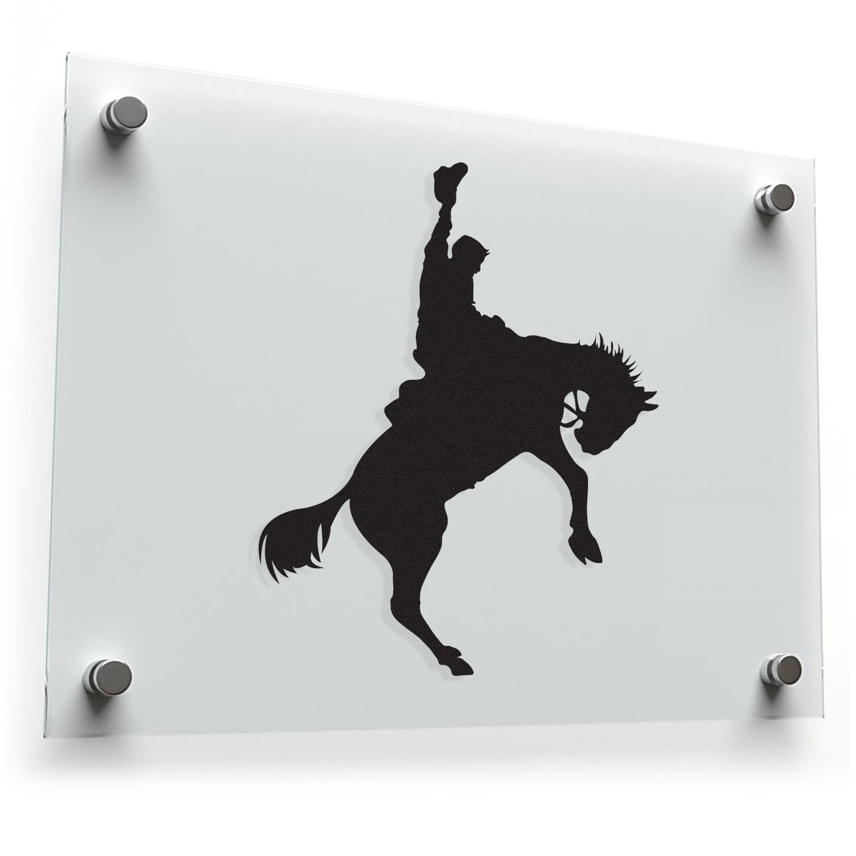 Celebrate the rugged spirit of the Wild West with this durable cowboy rodeo silhouette sticker. Featuring a bold black design, this high-quality vinyl decal is perfect for cars, laptops, water bottles, and more. Its timeless Western aesthetic complements a range of surfaces, making it an excellent decor option or gift for rodeo enthusiasts. With easy application and clean removal, this sticker offers long-lasting durability while being effortless to use. Available in multiple size options, it allows you to customize your space or belongings with rustic charm and unbeatable practicality.