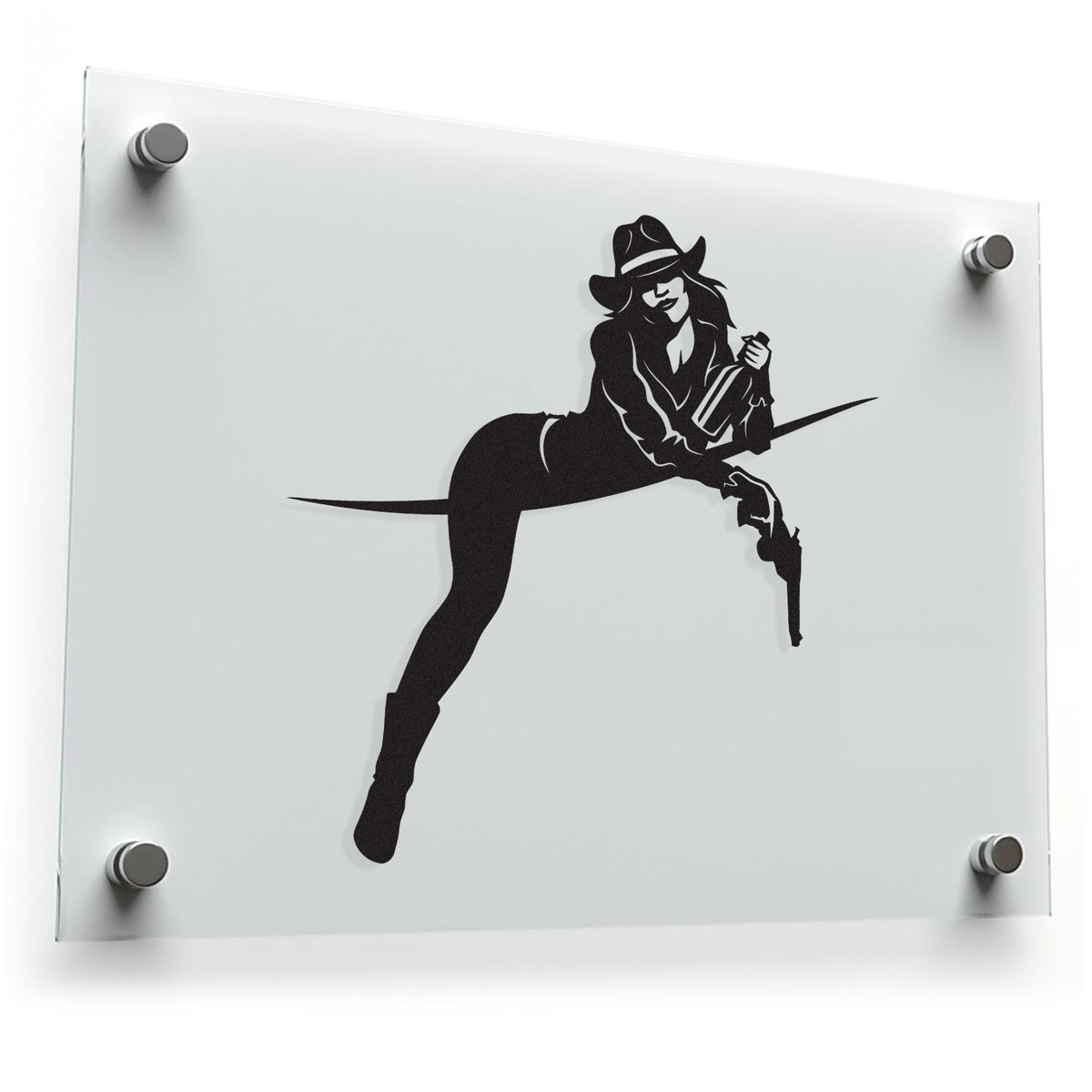 🎨 Rustic Appeal: The striking silhouette of a cowgirl with a hat and revolver complements Western, rustic, or minimalist decor styles, making it a versatile and eye-catching piece. 🎨