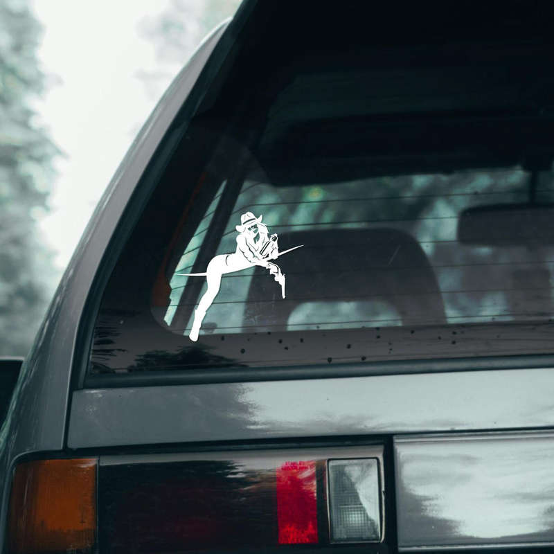 Embrace the spirit of the Wild West with this Cowgirl Silhouette vinyl decal, featuring a bold black design that exudes rugged elegance and Western charm. Perfect for personalizing cars, laptops, walls, or windows, this versatile sticker brings a rustic flair to any space. Made from durable, weather-resistant vinyl, it maintains its sharp look over time, even in outdoor conditions. Available in multiple sizes, this adhesive decal adapts to your unique needs, providing a flawless fit for any project. Whether you’re decorating a rustic-inspired room or adding personality to your ride, this decal offers an easy-to-apply and stylish solution.