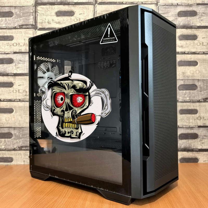 Make a bold statement with this crazy, cigar-smoking skull vinyl sticker. Featuring an intense design with wild red eyes and a smoking cigar, this durable sticker is perfect for personalizing cars, laptops, water bottles, or any surface that needs an edgy touch. Made from waterproof and UV-resistant vinyl, this sticker is designed for long-lasting use both indoors and outdoors. The easy peel-and-stick application makes it hassle-free to decorate your items, while its vibrant and detailed design ensures it catches attention. Available in multiple sizes, this skull sticker is a must-have for those who appreciate bold and unconventional designs.