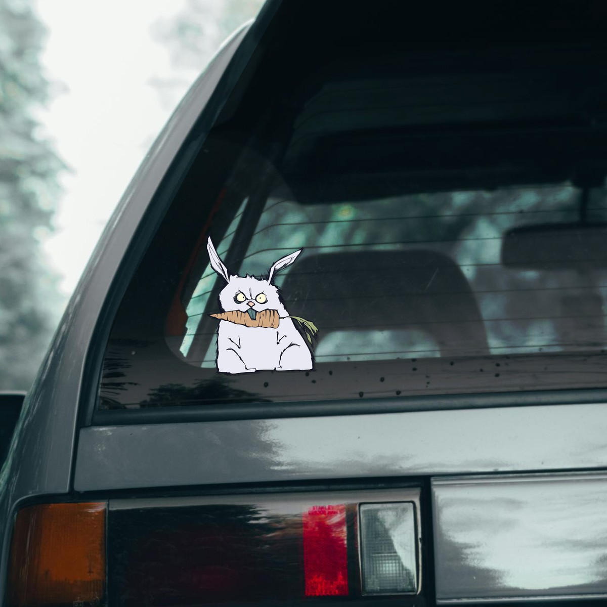 Add a touch of humor to your decor with this quirky crazy rabbit with a carrot sticker. Featuring a hilarious design, this durable vinyl decal is perfect for those who love funny and unique art. Weatherproof and long-lasting, it’s suitable for both indoor and outdoor use, making it a great choice for decorating cars, laptops, water bottles, or any smooth surface. Easy to apply and remove, this sticker offers a playful and fun addition to your belongings. Available in multiple sizes, it’s also an excellent gift for friends and family who appreciate whimsical designs.