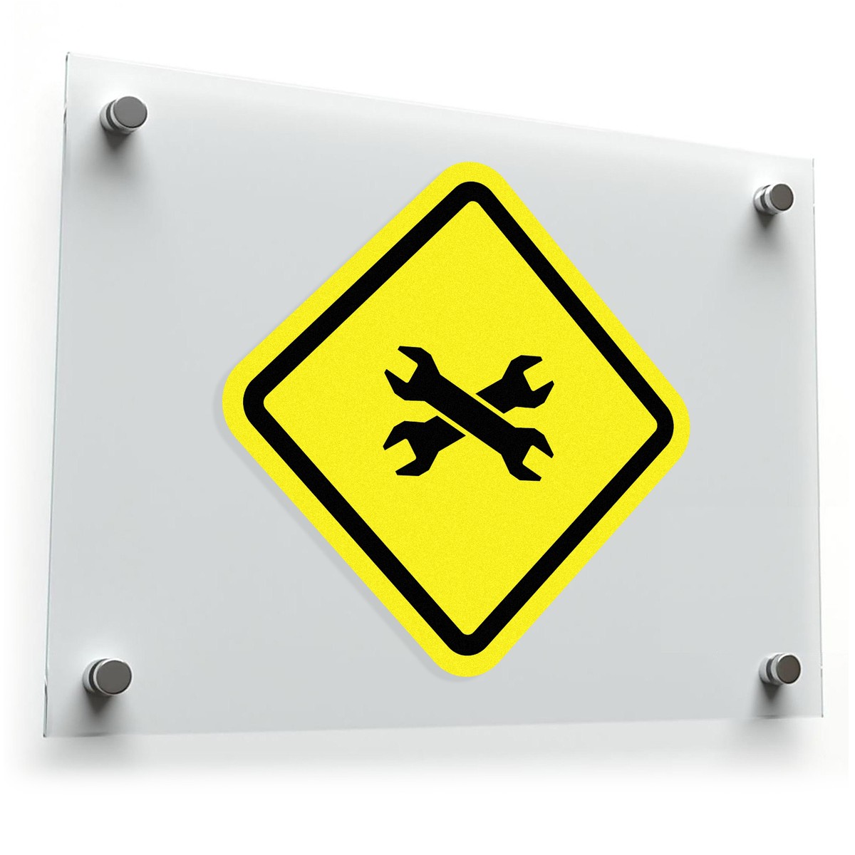 Enhance your workspace with this crossed wrenches warning sticker, designed in bold yellow and black for maximum visibility and style. Perfect for decorating toolboxes, walls, cars, and garages, this durable vinyl decal is a functional and eye-catching piece for mechanics and tool enthusiasts. Crafted from premium vinyl, it resists fading and peeling, making it suitable for both indoor and outdoor use. The sticker is easy to apply and remove, leaving no sticky residue, ensuring a hassle-free experience. Available in multiple size options, this sticker combines practicality and design, ideal for workshops and industrial spaces.