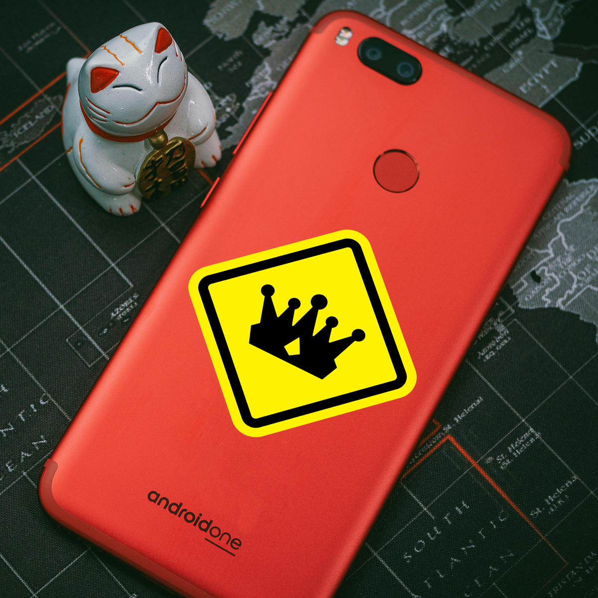 🎨 High-Contrast Design: The bright yellow background and black crown symbol create a sharp, high-contrast look, making this sticker stand out wherever it’s placed. 🎨