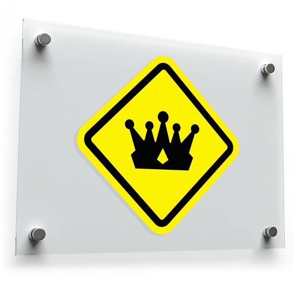 Make a royal statement with this bold crown warning sign sticker. Featuring a high-contrast yellow and black design, this vinyl decal is perfect for adding a fun and unique touch to your car, laptop, or walls. Crafted from waterproof and weather-resistant vinyl, this durable sticker can handle outdoor exposure while maintaining its striking look. Easy to apply and remove without residue, this crown sign sticker is available in multiple size options to fit any space or surface you want to personalize.