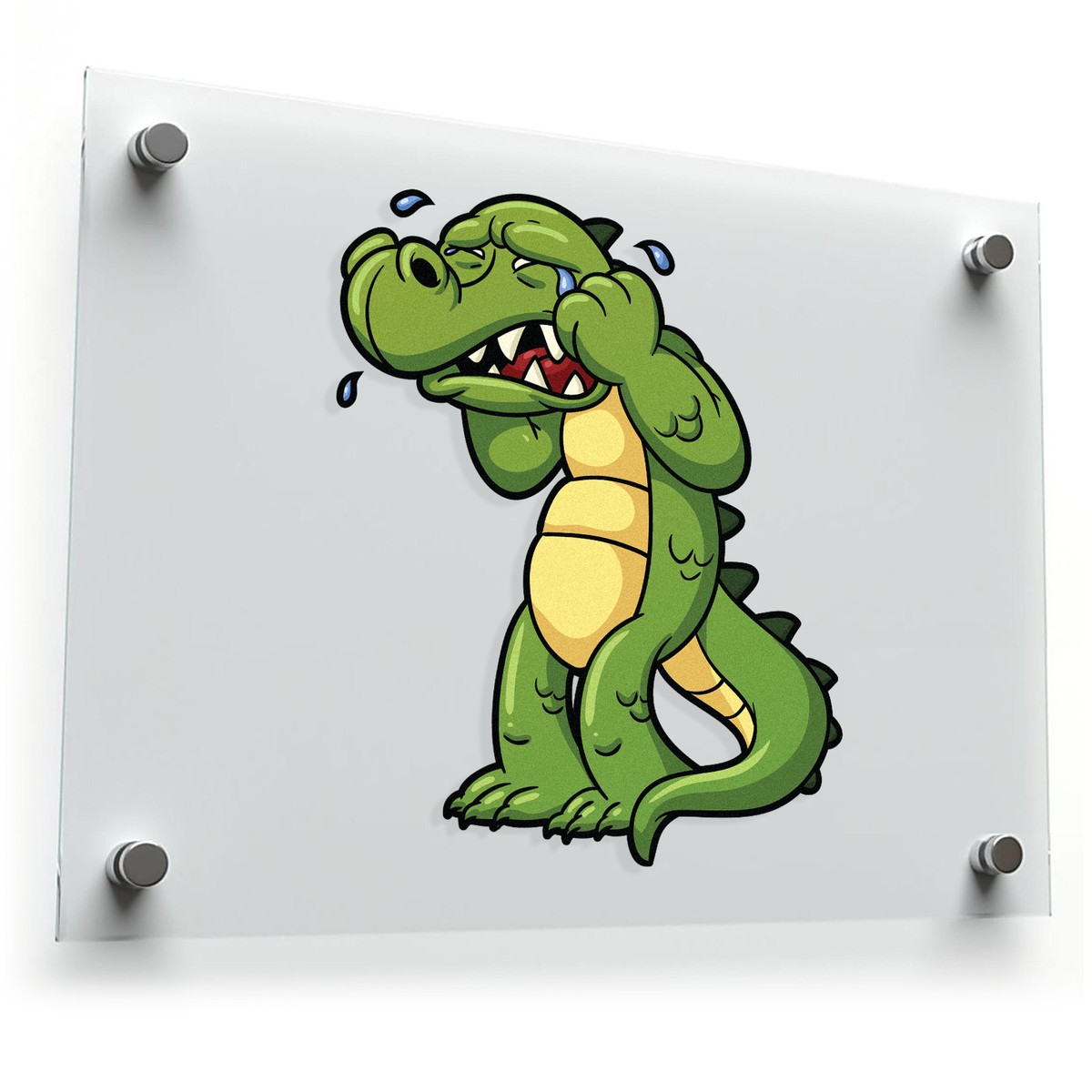Add a splash of humor to your belongings with this crying crocodile sticker! Featuring a whimsical cartoon-style crocodile wiping away tears, this green and yellow vinyl decal brings personality to any surface. Perfect for laptops, water bottles, notebooks, or other flat surfaces, it’s a fun way to express your love for animals and playful designs. Made from durable vinyl, this sticker is weatherproof and built to last, whether used indoors or outdoors. Easy to apply and remove without residue, it’s perfect for kids, teens, or anyone who loves lighthearted accessories. Available in multiple size options to suit your needs.