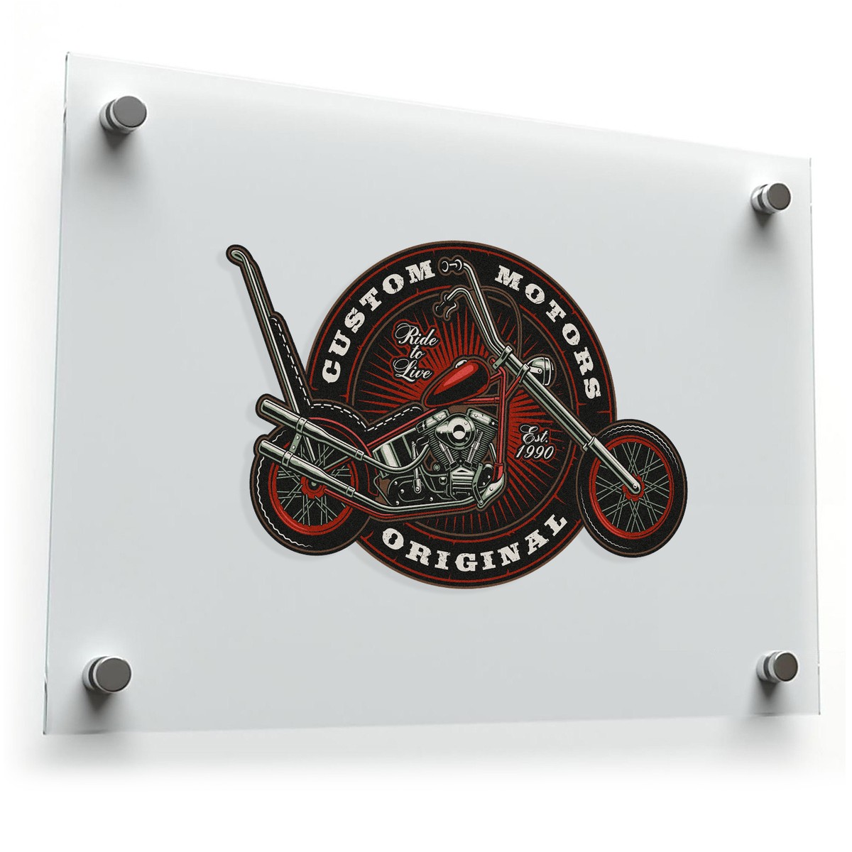 Add bold character to your space with this striking Custom Motors chopper sticker. Featuring a vintage motorcycle design with vibrant red and black details, it embodies the “Ride to Live” theme for motorcycle enthusiasts. Crafted from premium vinyl, this durable decal is built to last, resisting fading and peeling. It’s versatile and easy to apply, making it ideal for use on helmets, laptops, walls, or garage decor. Whether you’re gifting a biker friend or personalizing your space, this sticker is a timeless addition. Available in multiple sizes, it’s the perfect way to show your love for motorcycles.