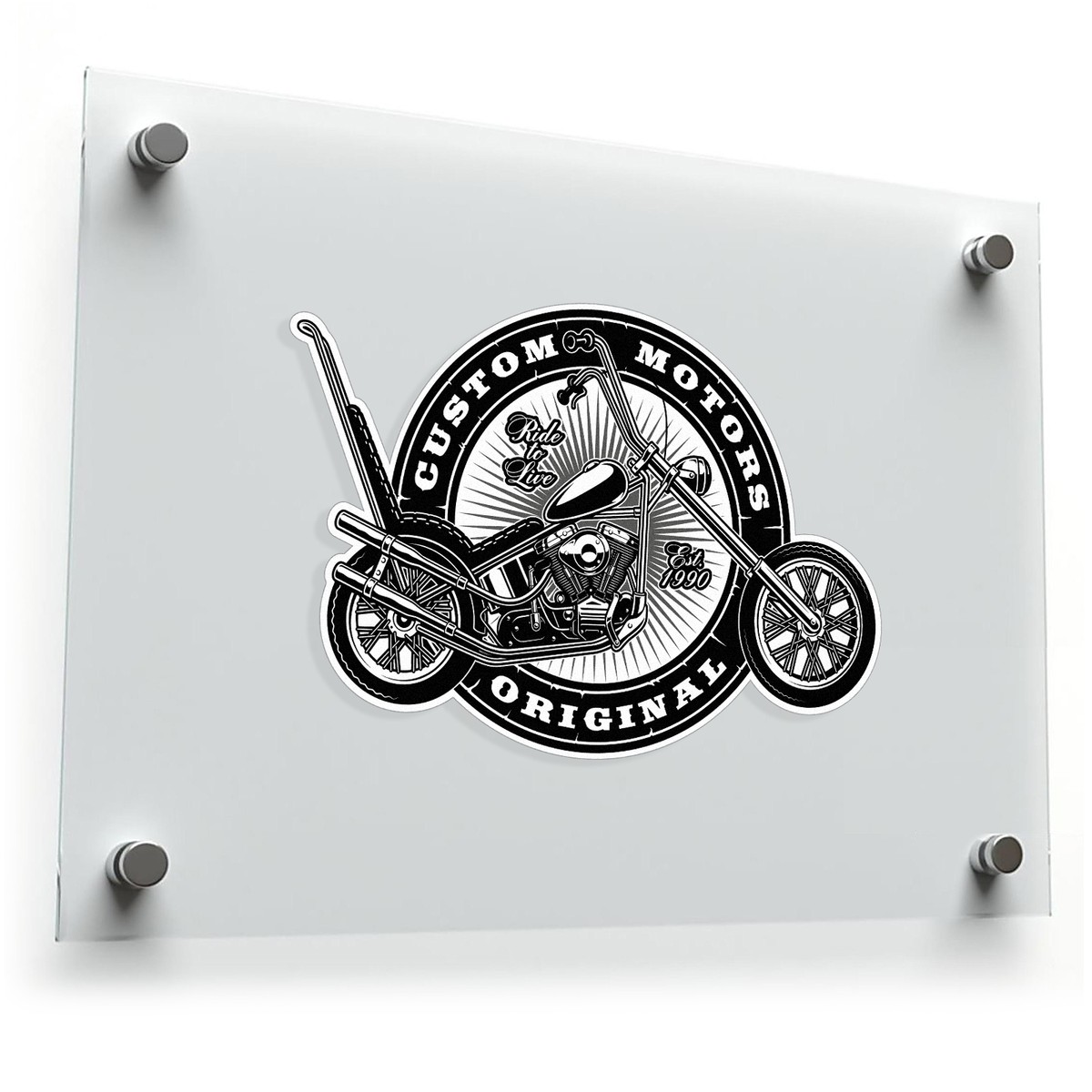 Show your passion for chopper motorcycles with this stunning Custom Motors vinyl sticker. Featuring a detailed black and white design with a “Ride to Live” theme, this decal is a must-have for any biker. Its durable vinyl construction ensures long-lasting appeal, while the timeless monochrome color palette complements any space. Whether used as garage decor, a gift for motorcycle enthusiasts, or an accent for laptops and toolboxes, this sticker delivers versatility and style. Easy to apply and remove, it’s available in multiple sizes, making it ideal for both personal use and gifting.