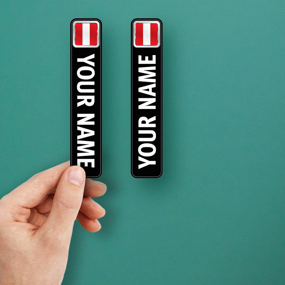 🎨 Bold and Striking Design: The sleek black background contrasts beautifully with the vibrant red and white flag and bold white text, ensuring your name stands out. 🎨