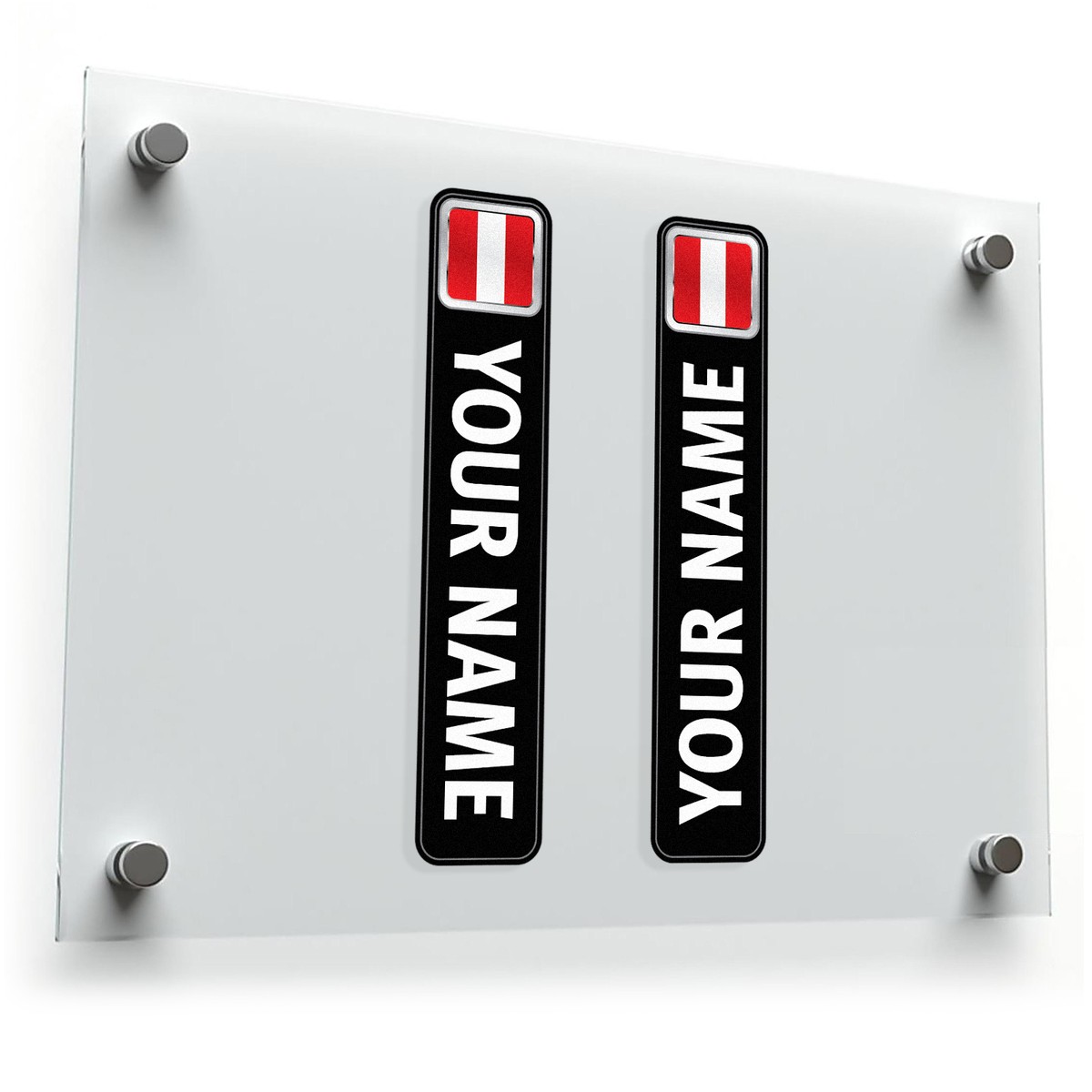 Show off your individuality and pride with this custom name sticker featuring the Peruvian flag. With a bold red and white flag design set against a sleek black background, this sticker adds a patriotic and personalized touch to any surface. Crafted from durable, weatherproof vinyl, it resists fading and peeling, making it ideal for cars, bikes, helmets, or personal gear. The bold white text ensures your name is clearly visible, while the easy-apply adhesive makes installation hassle-free. Perfect for personal use or as a thoughtful gift, this sticker offers style, durability, and versatility. Available in multiple sizes to meet your needs!