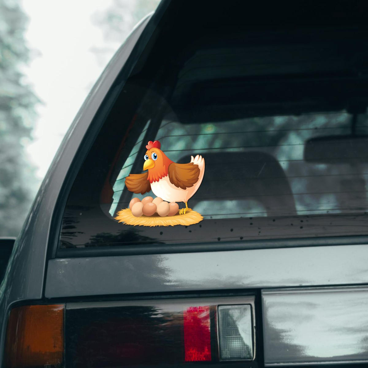 Cute Hen and Eggs Cartoon Vinyl Decal