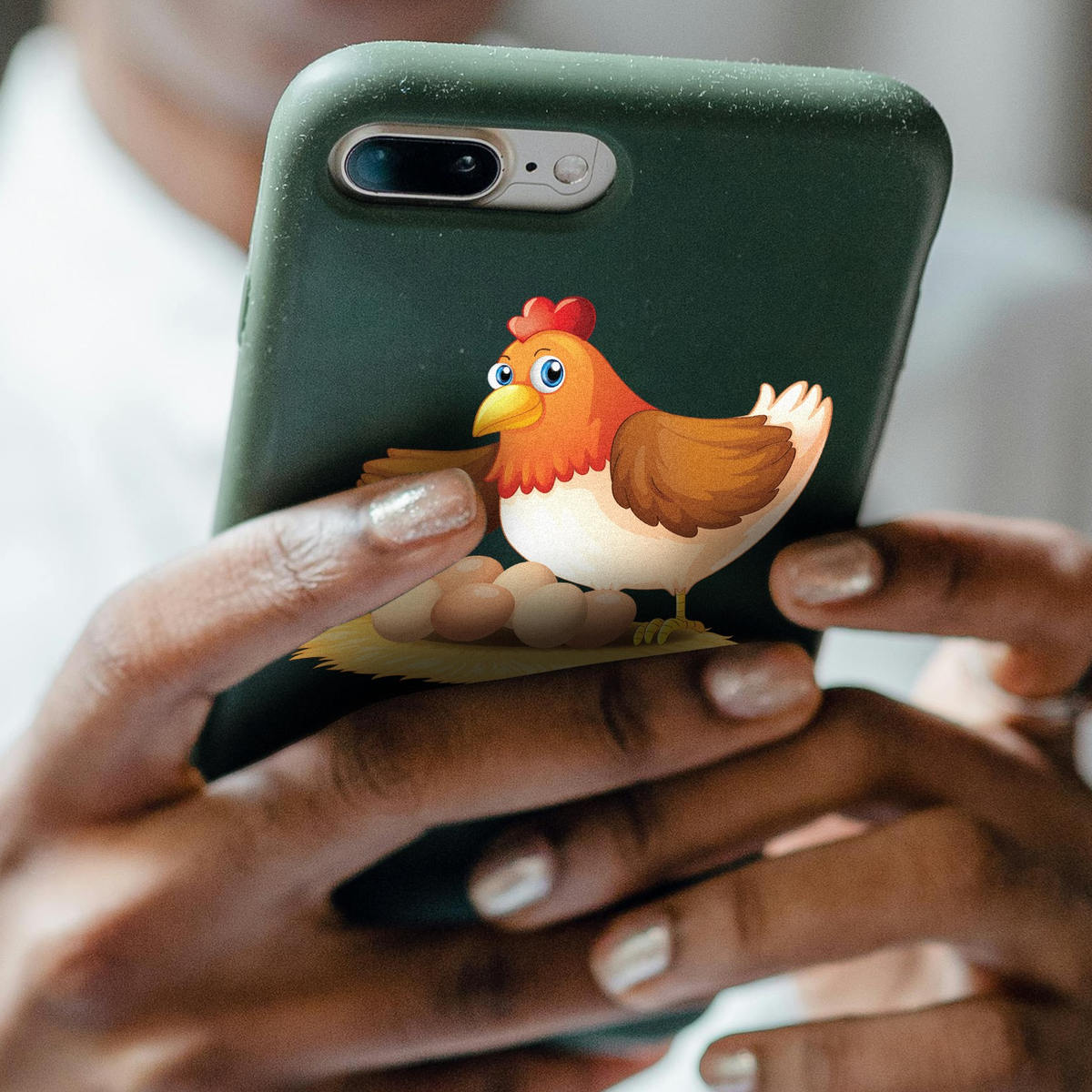 Cute Hen and Eggs Cartoon Vinyl Decal 🐔 Adorable Hen and Eggs Design: This charming cartoon hen sitting on her eggs adds a fun and cute touch to any surface, perfect for children’s rooms or farm-themed decor. 🐔