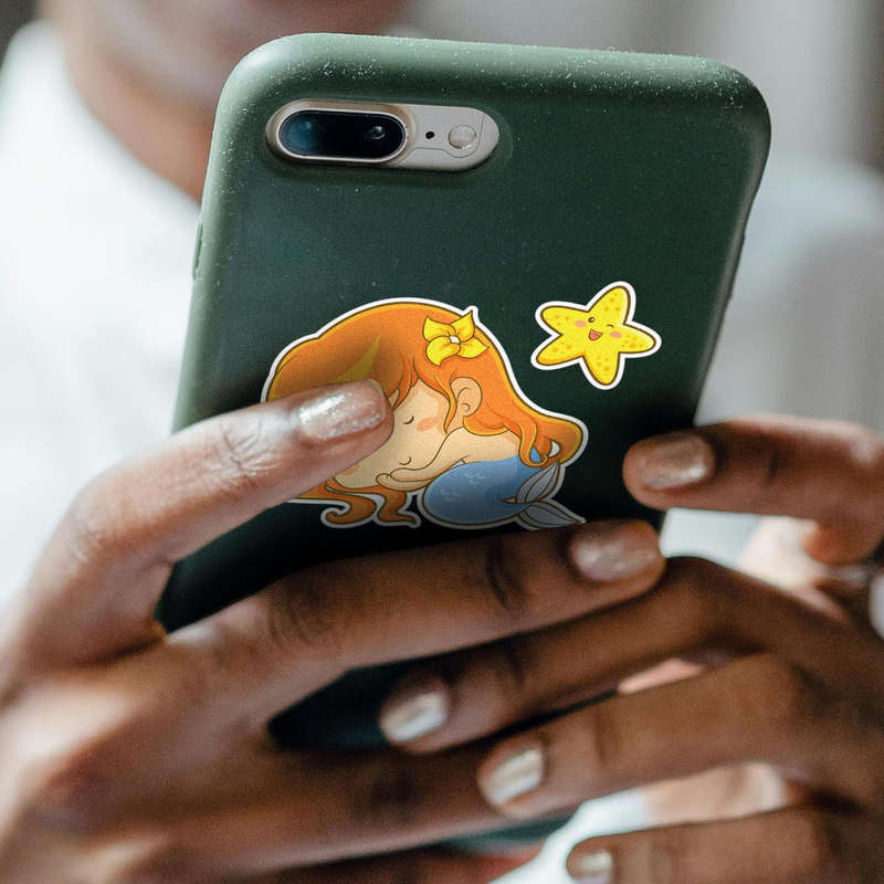 Bring the magic of the ocean to your belongings with this Cute Mermaid and Starfish Sticker. Featuring an adorable cartoon mermaid with bright orange hair and her playful starfish friend, this vinyl decal is perfect for kids and ocean lovers alike. Whether for decorating laptops, water bottles, notebooks, or kids’ rooms, it adds a cheerful, whimsical touch to your items. Made from durable, waterproof vinyl, it resists scratches and fading, ensuring its vibrant design lasts. Available in multiple sizes, this sticker offers flexible personalization for subtle accents or bold decor. Its easy peel-and-stick application makes it a fun and hassle-free way to customize your world.