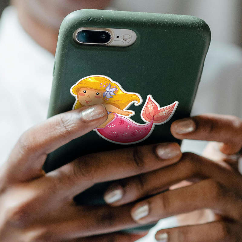 Delight in the charm of this cute mermaid sticker, featuring a whimsical cartoon design with vibrant colors. With a bright pink tail, golden hair, and cheerful purple accents, this decal adds a playful touch to cars, laptops, walls, or kids’ rooms. Made from premium vinyl, it offers durability and fade resistance while being easy to remove without sticky residue. Perfect for children’s spaces or anyone who loves mermaids and ocean-inspired art, this sticker is available in multiple sizes, making it a fun and versatile decoration.