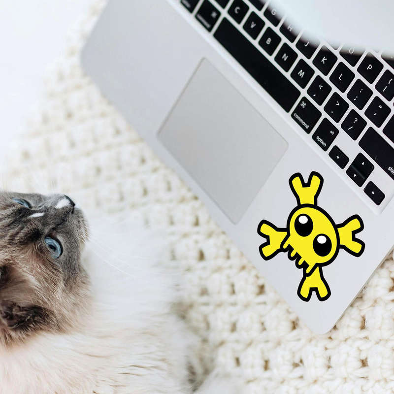Add a playful twist to your belongings with this cute yellow skull sticker featuring a unique cartoon design. With its vivid yellow color and quirky antler-like extensions, this vinyl decal brings a mix of fun and spookiness to any surface. Made from high-quality, waterproof vinyl, it’s perfect for both indoor and outdoor use, resisting fading over time. Whether for your laptop, car, or water bottle, this sticker provides an easy and stylish way to personalize your items. Available in multiple size options, it’s the ideal choice for making a bold or subtle statement.