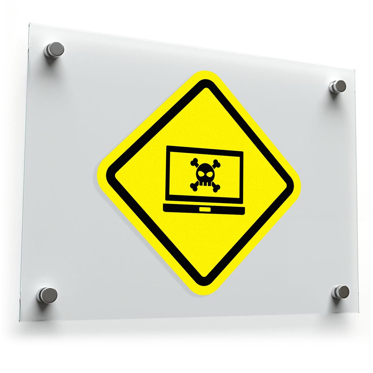 Raise awareness of cyber threats with this bold yellow and black caution sign decal, featuring a skull and laptop graphic. Perfect for IT departments, data centers, or any workspace that requires heightened attention to digital security risks, this vinyl sticker ensures visibility and durability. Designed for both indoor and outdoor use, it resists weather and fading while being easy to apply and remove without residue. Available in multiple size options, this sticker is the ideal addition to tech-heavy environments, helping to maintain cybersecurity vigilance.