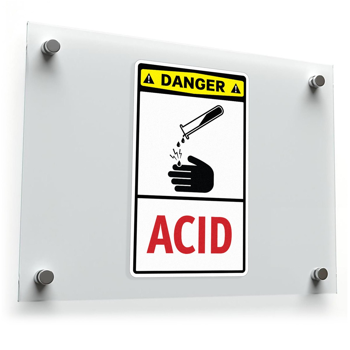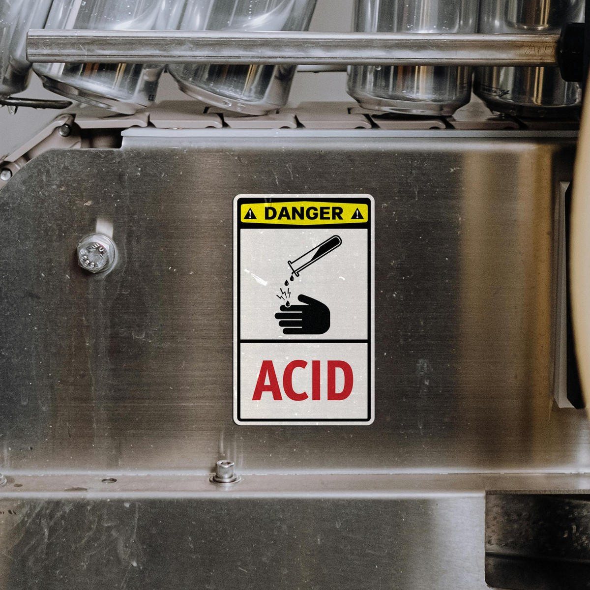 Danger Acid Warning Sticker ⚠️ Critical Chemical Safety Warning: This “Danger Acid” sticker clearly marks areas where corrosive materials are present, ensuring employees stay alert and avoid dangerous contact. ⚠️