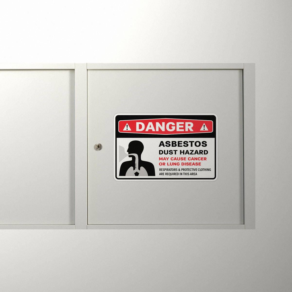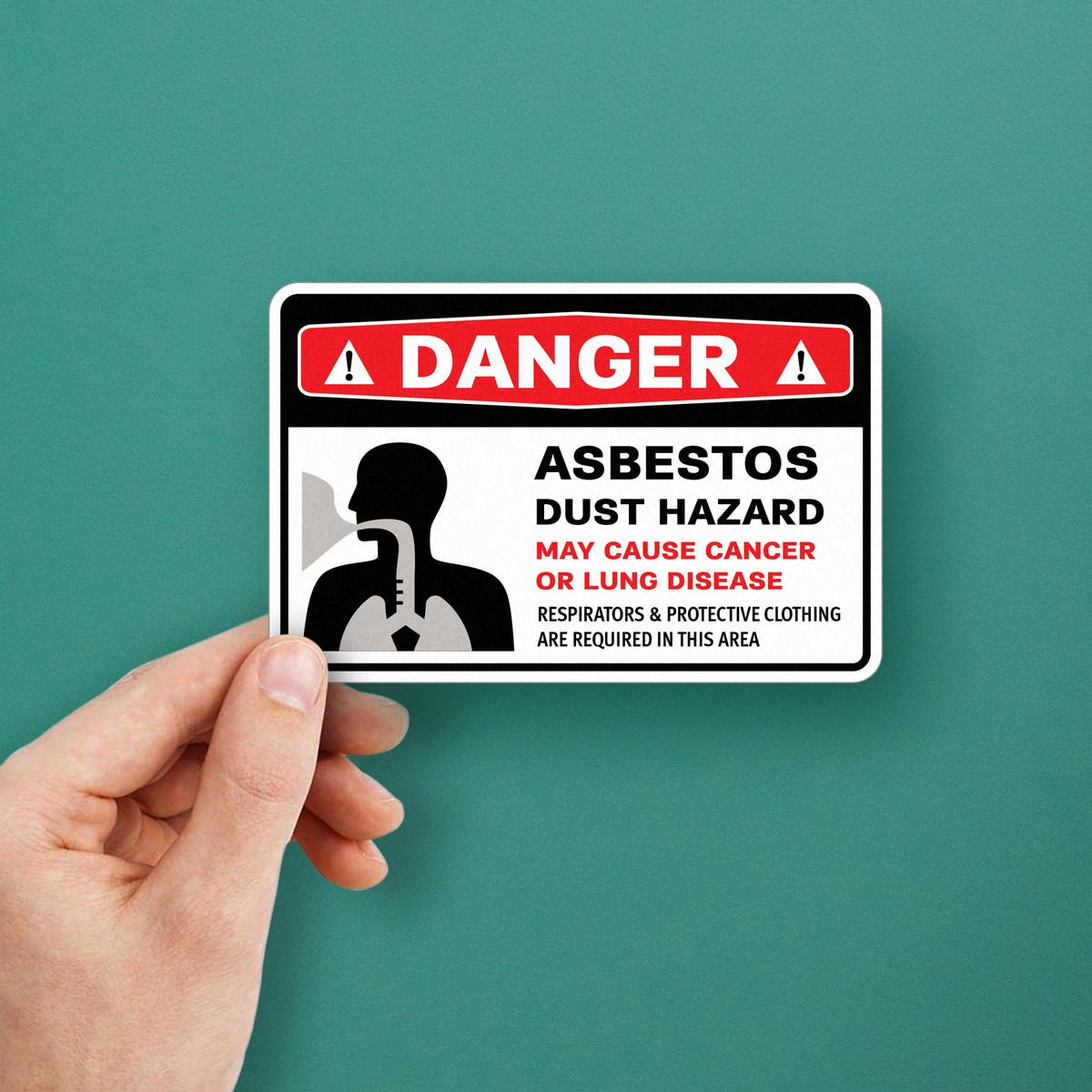 Ensure safety in hazardous areas with this durable “Danger Asbestos Dust Hazard” warning sticker. Featuring bold text and clear imagery, this decal alerts personnel to the potential cancer and lung disease risks posed by asbestos dust. It also emphasizes the requirement for respirators and protective clothing in the area. Made from high-quality vinyl, this safety sign withstands tough environments and remains highly visible both indoors and outdoors. Available in multiple sizes, including 10×7 inches, it’s easy to apply on smooth surfaces and helps keep your workplace safe and compliant.