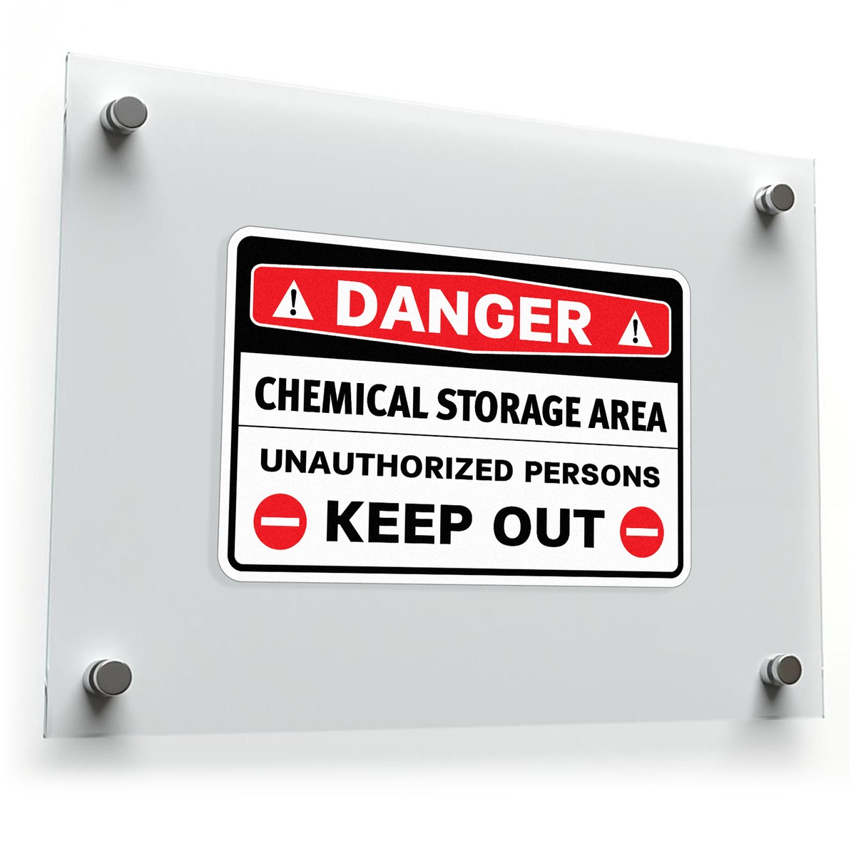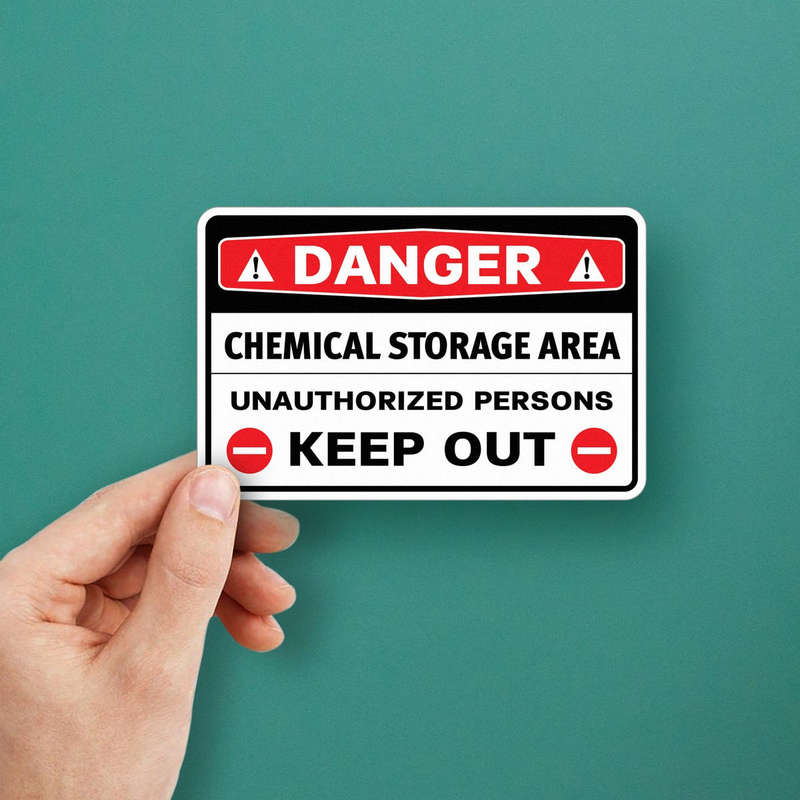 Danger Chemical Storage Area Sticker ☣️ Chemical Hazard Warning: This “Danger: Chemical Storage Area” sticker communicates critical safety information, warning unauthorized persons to stay out of hazardous chemical areas. ☣️