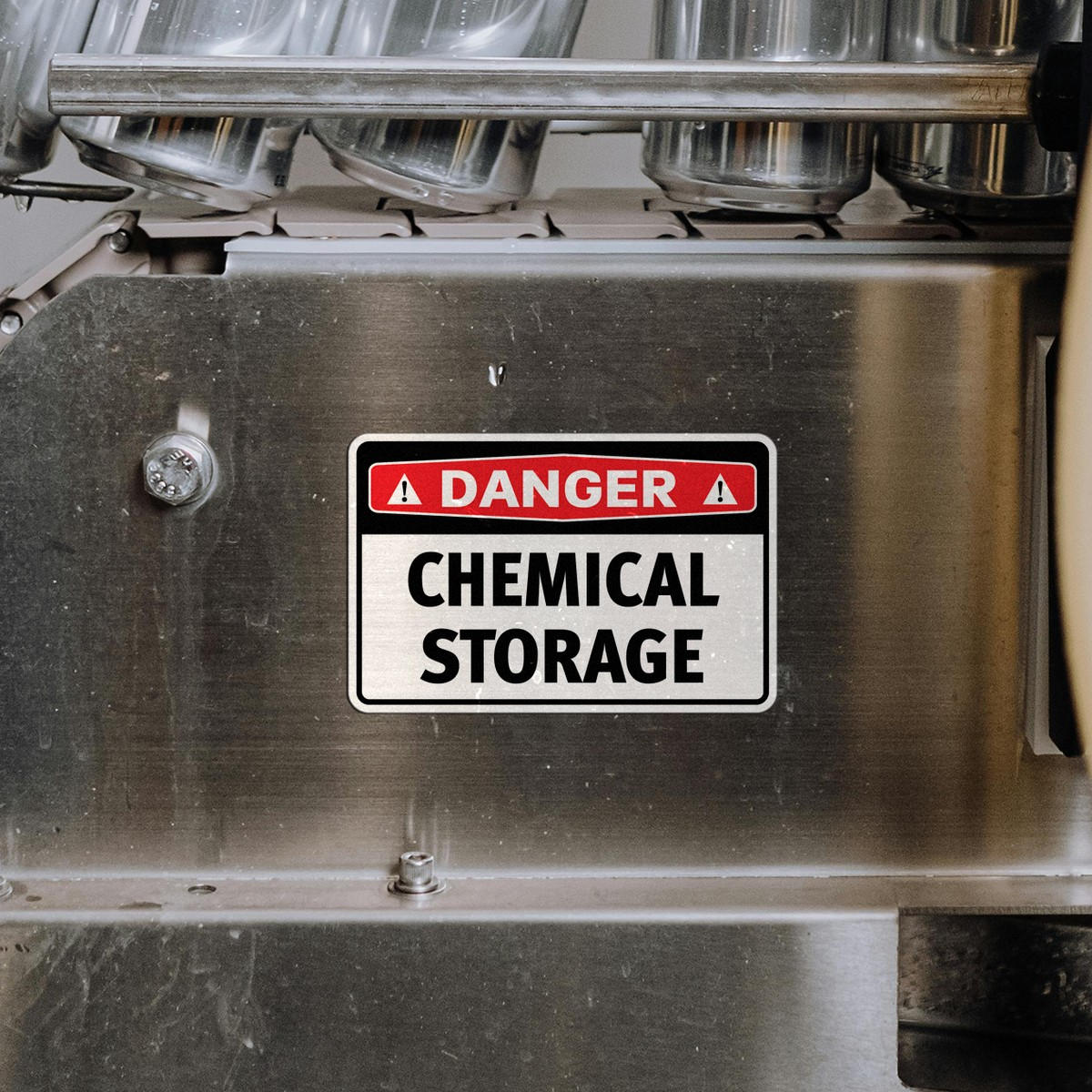 Ensure workplace safety with this “Danger: Chemical Storage” vinyl sign decal, designed to alert personnel and visitors of hazardous areas. The bright red and black color scheme ensures high visibility, while the durable vinyl material resists wear from chemicals, weather, and daily use. Ideal for both indoor and outdoor application, this sticker is easy to apply to walls, doors, and containers, helping your facility maintain safety and compliance standards. Available in multiple size options, this decal is perfect for any industrial or storage area requiring clear, unmistakable warnings.