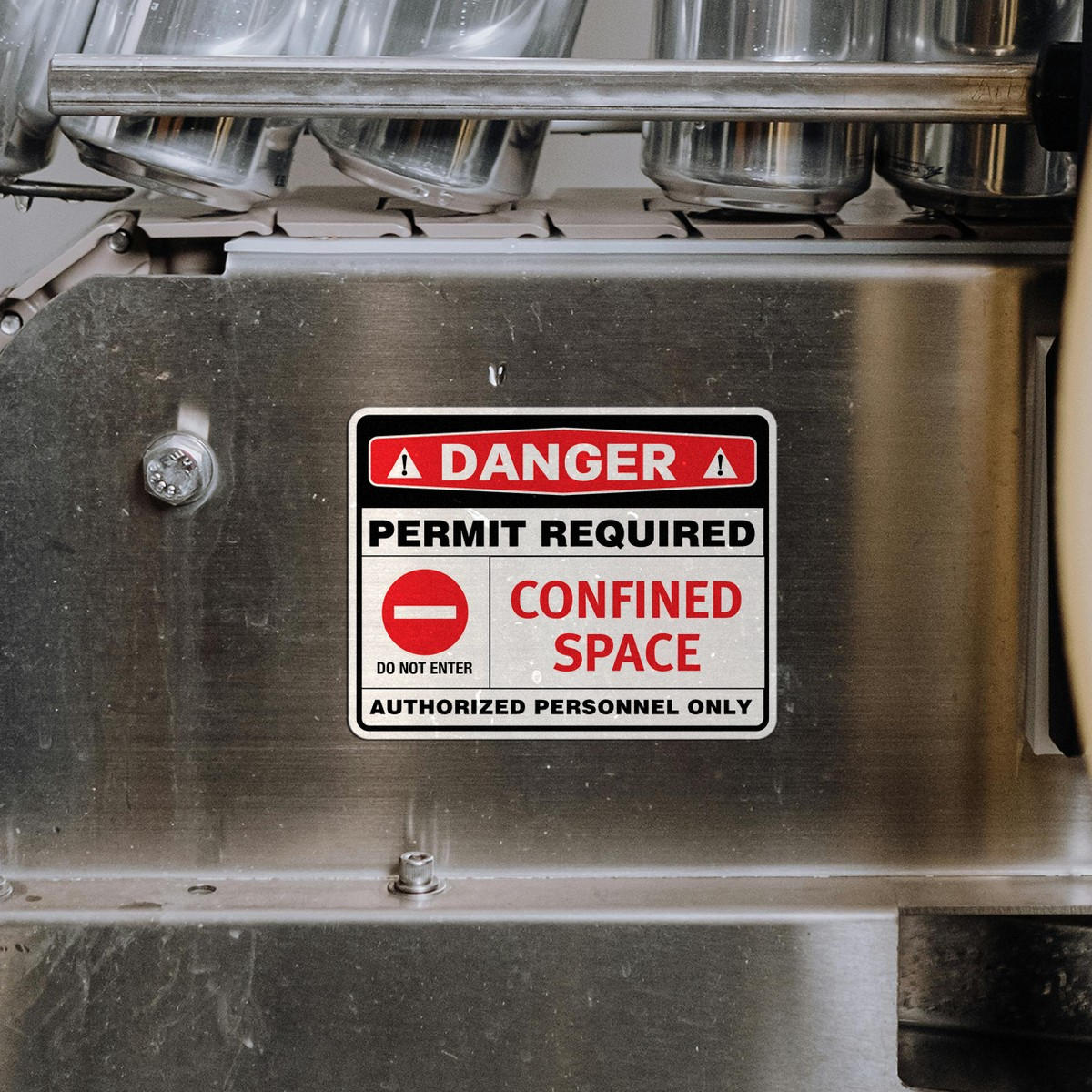 Ensure safety and compliance in hazardous areas with this Confined Space Safety Sign. Clearly stating “Permit Required, Authorized Personnel Only,” this weatherproof vinyl sticker is ideal for industrial environments such as factories, warehouses, and construction sites. Crafted from durable vinyl, this decal is built to withstand tough indoor and outdoor conditions, ensuring the warning remains visible over time. Easy to apply, it adheres securely to clean surfaces and provides a clear, professional warning. Available in multiple sizes, this safety sign helps prevent unauthorized entry and ensures a safer workspace.