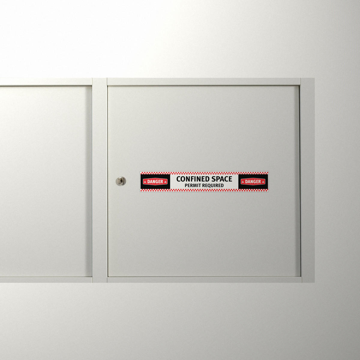 Promote safety and compliance in your industrial or construction environment with this durable “Danger Confined Space” vinyl decal. Designed to withstand tough conditions, this weatherproof sticker is perfect for both indoor and outdoor applications. Its bold red and black design combined with a clear “Permit Required” warning ensures high visibility and immediate recognition in any setting. Ideal for marking hazardous areas, this decal serves as an essential part of your workplace safety program. Plus, it can be easily removed without leaving residue, making it convenient for updating protocols as needed. Available in multiple size options.