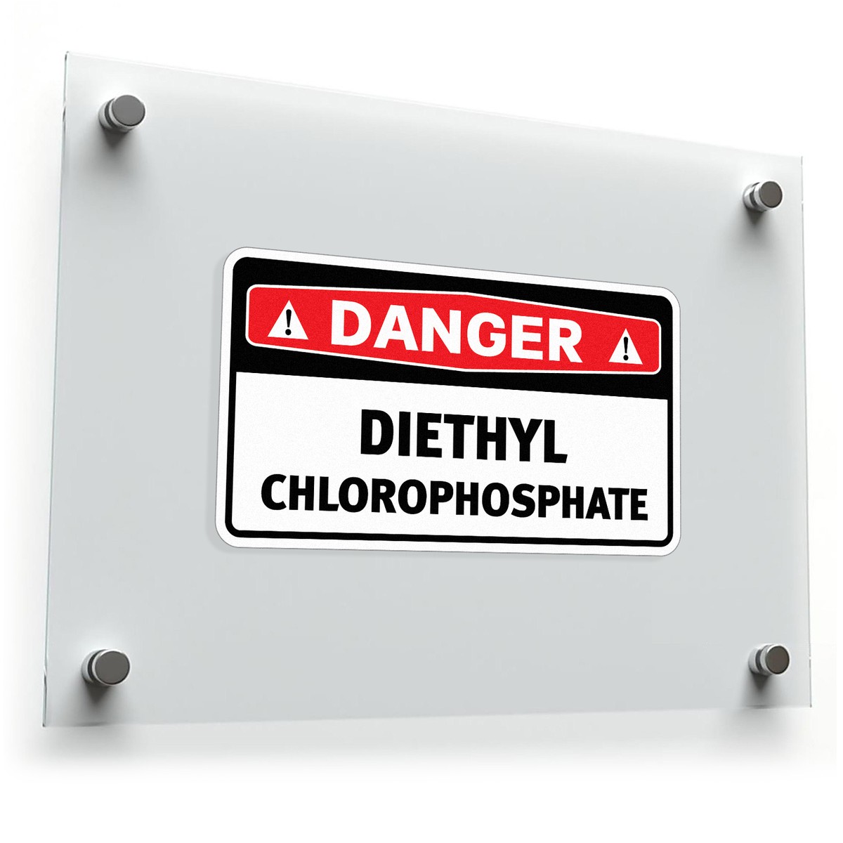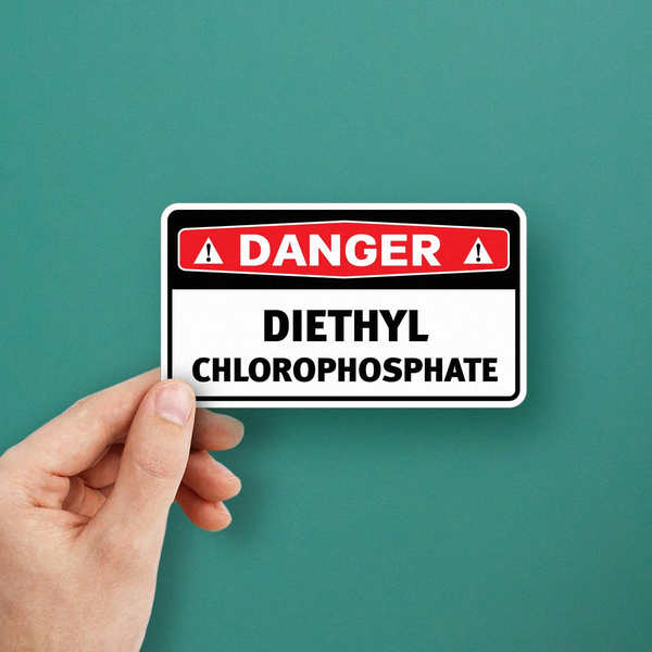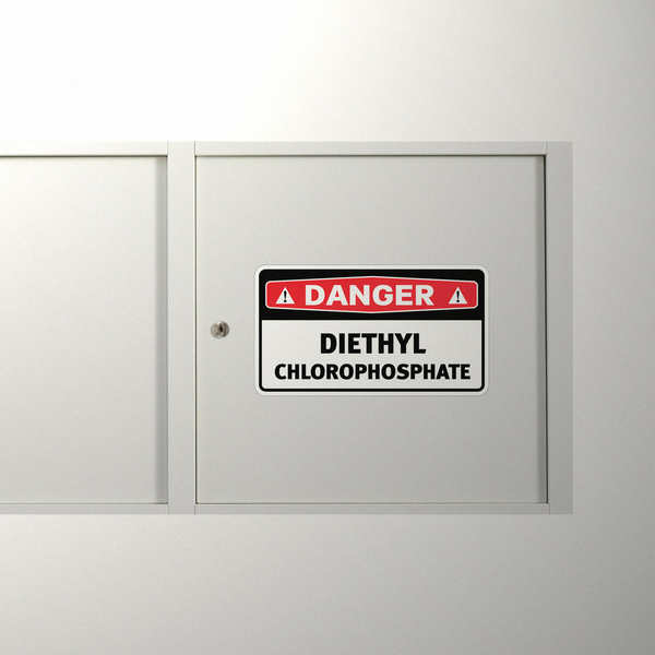 Ensure safety and compliance in your workplace with this “Danger Diethyl Chlorothiophosphate” decal. This 3×5 inch sticker features bold, clear lettering against a striking red and white background, making the hazard warning easily visible. Crafted from durable, weatherproof vinyl, this decal is designed to withstand harsh industrial environments and maintain its clarity over time. The strong adhesive ensures a secure and long-lasting application on any clean, flat surface. This decal serves as a critical safety measure, effectively communicating the potential dangers associated with this chemical. Available in Multiple Size Options. The image shows a rectangular sign with a black border. The top portion is red with the word “DANGER” in white letters. The bottom portion is white with the chemical name in black text.