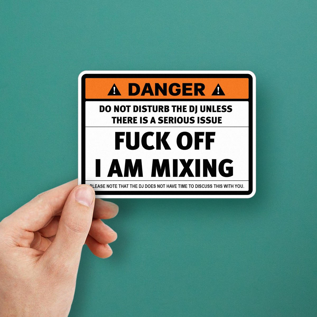 Danger DJ Sticker ⚠️ Bold Warning for DJs: This humorous “F*ck Off, I Am Mixing” sticker ensures that your message is loud and clear, keeping distractions away during your set! ⚠️
