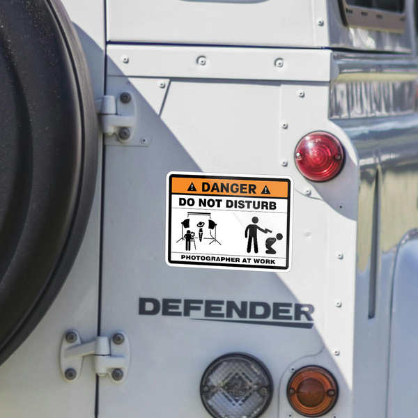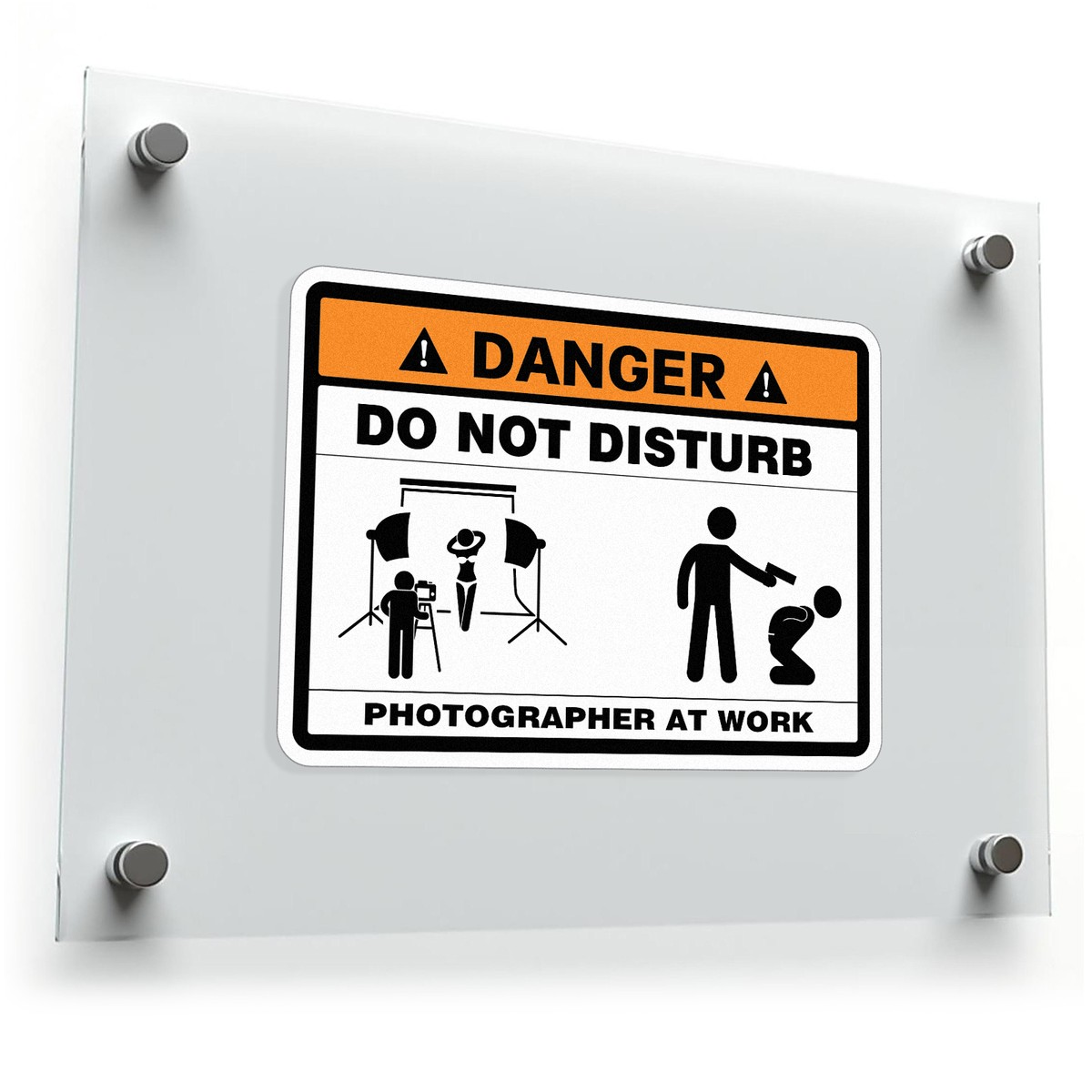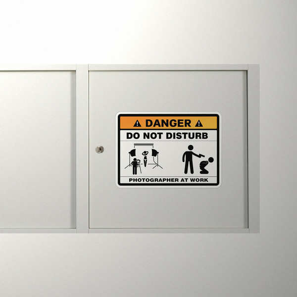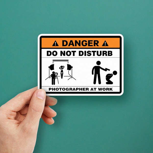 Add a dose of humor to your photography space with this “Danger Do Not Disturb Photographer At Work” decal. This high-quality vinyl sticker is perfect for photographers who appreciate a good laugh. Featuring a clear message with an amusing graphic of a photographer in action, this decal is ideal for studios, laptops, camera cases, and more. Its durable construction ensures long-lasting use, while its easy application and removal make it a convenient choice. The prominent colors are black, white, and a safety orange, ensuring the message is clearly visible. Available in Multiple Size Options.