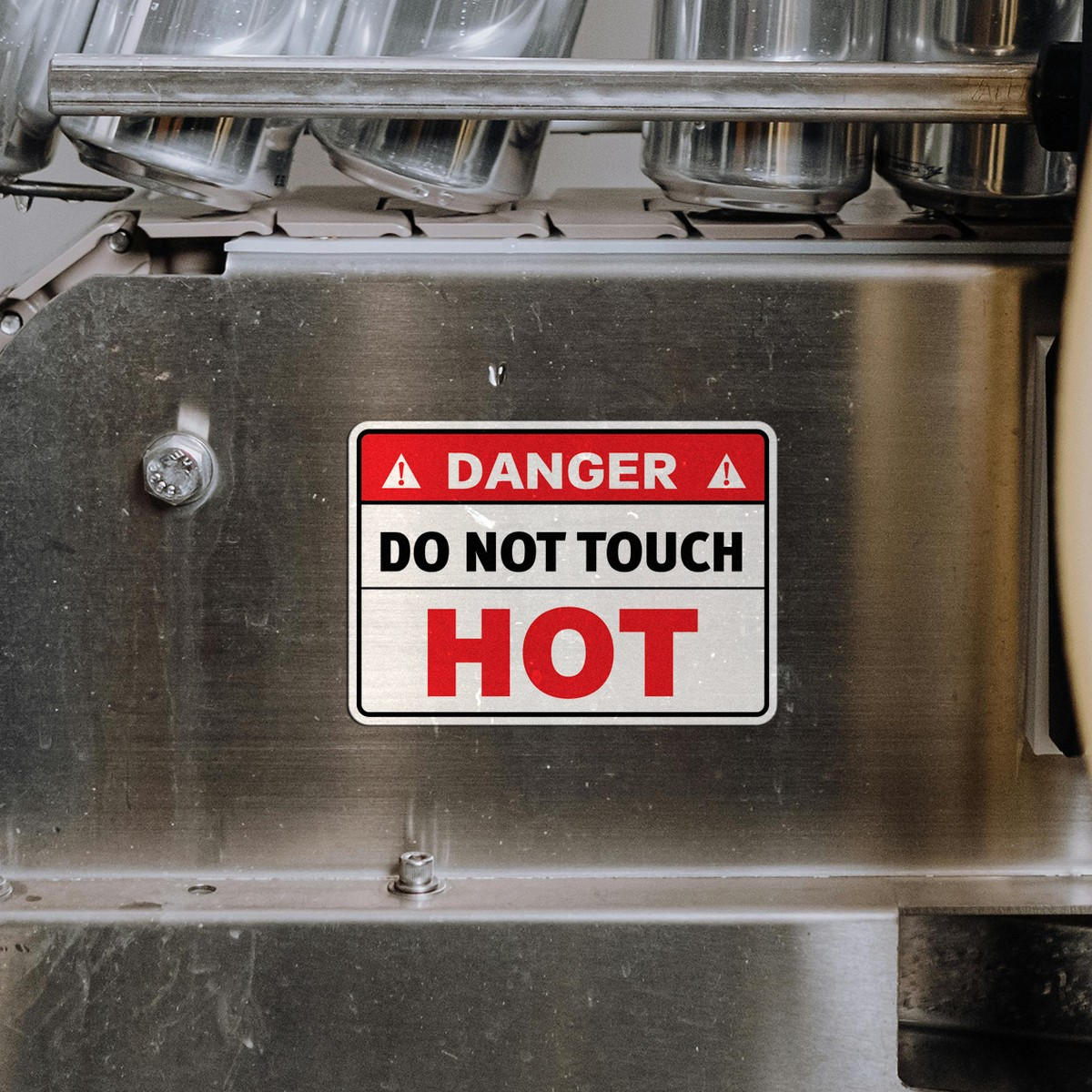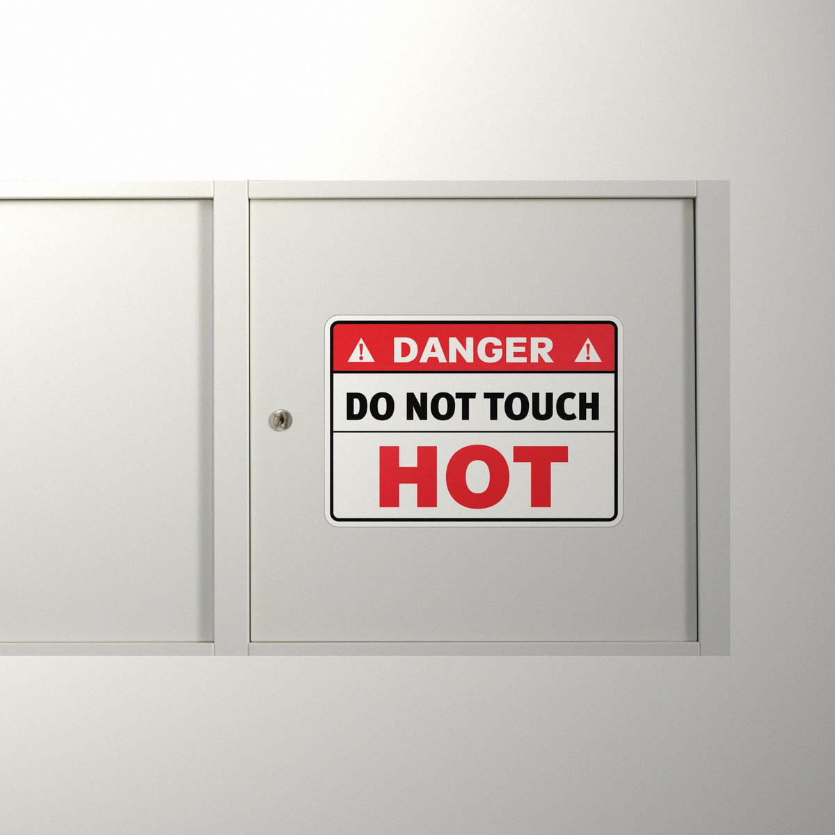 Ensure safety in your workplace with this high-visibility “Danger: Do Not Touch Hot” sticker. Crafted from durable vinyl, this warning decal is designed to prevent accidents by providing a clear, bold message in areas where hot surfaces pose a hazard. Its red, black, and white design ensures maximum visibility, making it suitable for industrial equipment, machinery, and other high-risk areas. Weatherproof and fade-resistant, this sticker holds up in both indoor and outdoor environments. Easy to apply and remove, it’s a reliable safety measure for any workplace, available in multiple sizes for your specific needs.