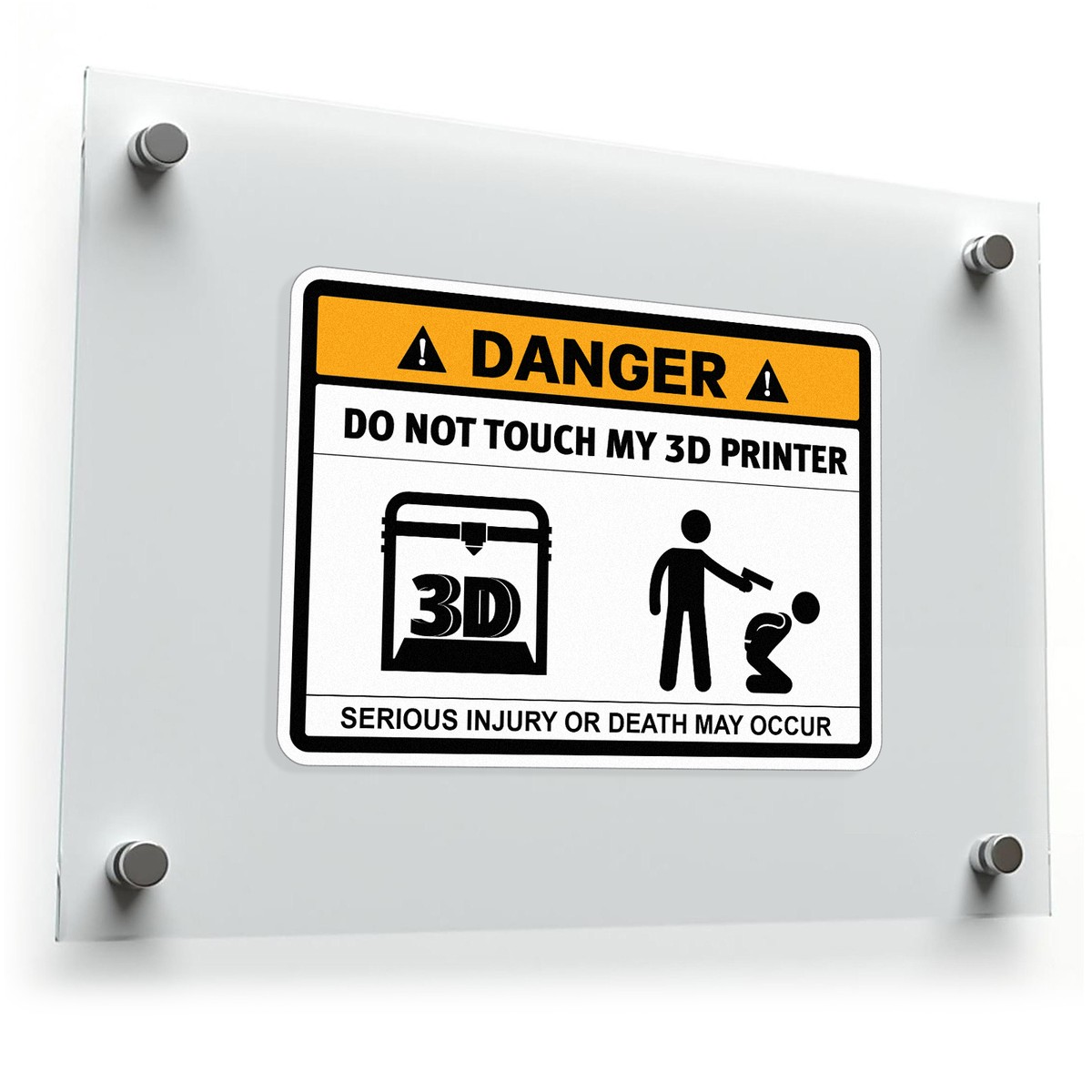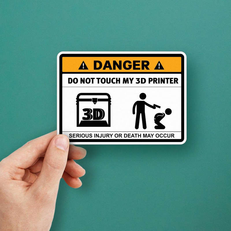 Protect your 3D printer and add a touch of humor to your workspace with this “Danger: Do Not Touch My 3D Printer” vinyl sticker. Featuring bold text, vivid yellow and black colors, and a striking graphic, this decal ensures your warning is both clear and entertaining. Crafted from durable, weatherproof vinyl, it withstands scratches, water, and fading, making it perfect for workshops, offices, or outdoor settings. Easy to apply and remove without residue, it’s available in various sizes to suit your space. Keep your equipment safe and your personality on display with this eye-catching warning sign.