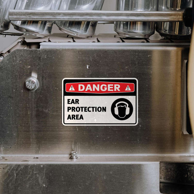🎨 High-Visibility Design: Featuring a bold red header, clear black text, and an ear protection icon, this sticker ensures quick recognition in industrial and construction environments. 🎨