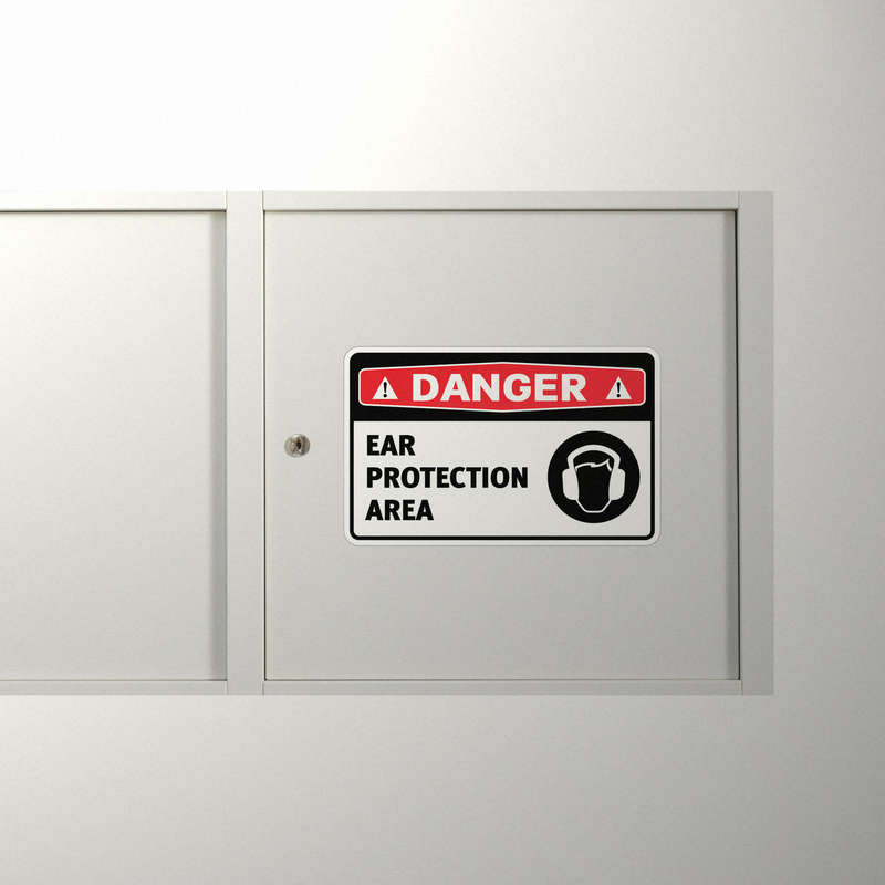 Ensure hearing safety with this “Danger: Ear Protection Area” sticker, an essential tool for promoting the use of protective equipment in high-noise environments. Featuring a bold red header, clear black text, and a universally recognizable ear protection icon, this decal ensures visibility and easy understanding. Made from durable, waterproof vinyl, it resists wear and fading, making it ideal for indoor and outdoor use in industrial settings. Designed to support OSHA compliance, it’s perfect for factories, workshops, and construction sites. Easy to apply and remove, this sticker leaves no residue behind. Available in multiple sizes to meet your safety signage needs.
