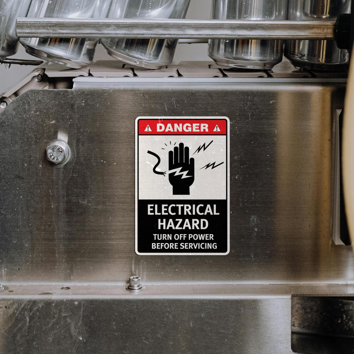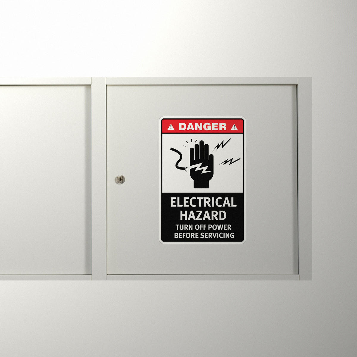 Promote electrical safety in your workplace with this “Danger Electrical Hazard” sign, designed for industrial and high-risk environments. Made from durable vinyl, this OSHA-compliant decal provides long-lasting visibility both indoors and outdoors, ensuring that safety protocols are clearly communicated. The sign reminds workers to turn off power before servicing, helping to prevent accidents and injuries. Its bold red, black, and white design makes it easy to spot in hazardous areas. Easy to apply and remove, this decal is suitable for temporary or permanent use in any workspace. Available in multiple sizes to fit your specific needs.