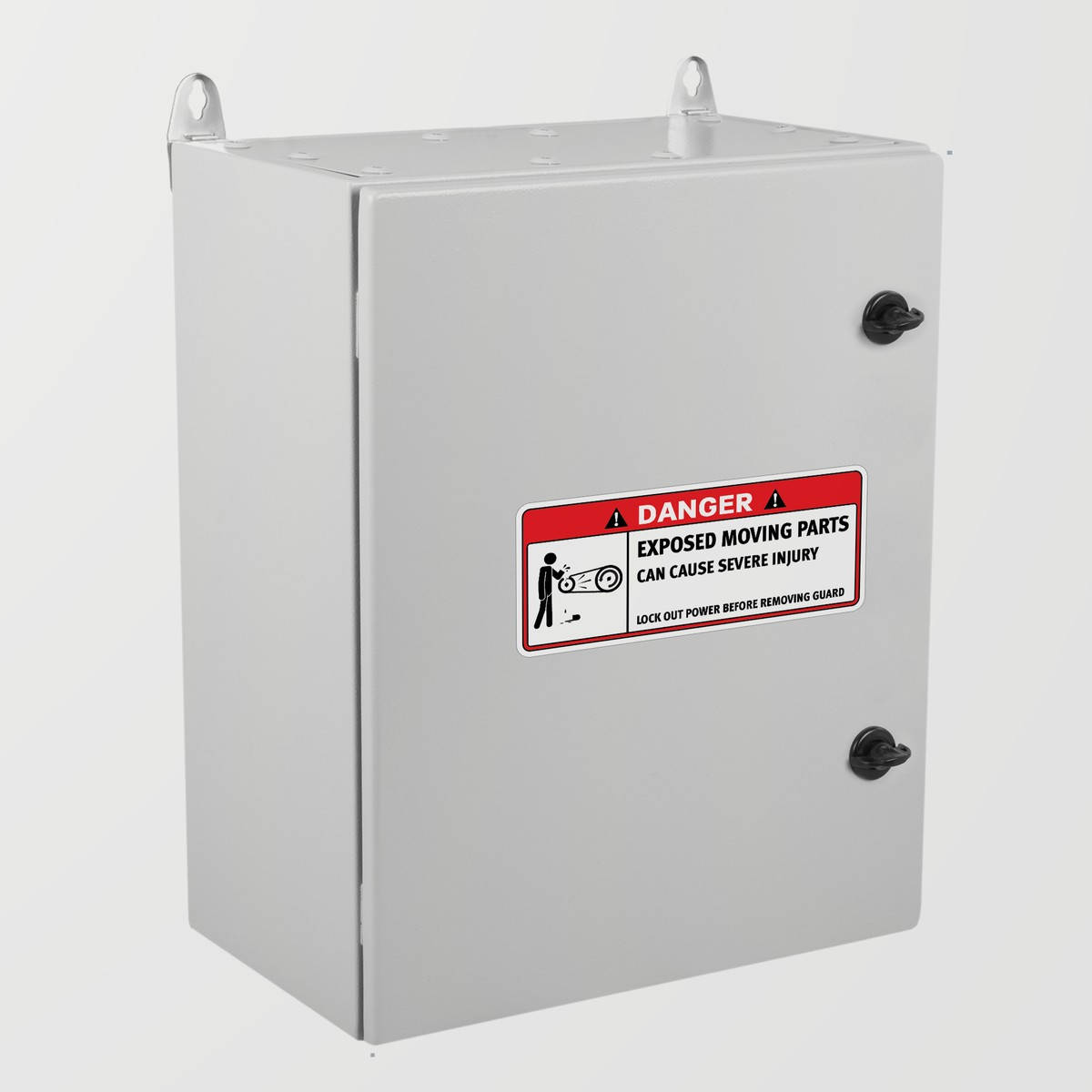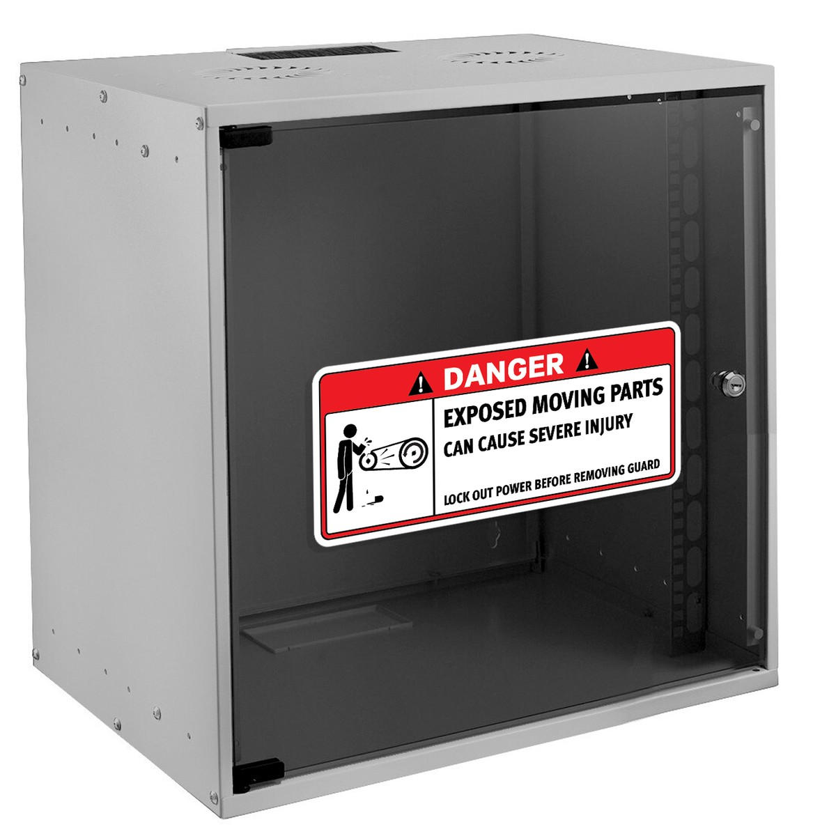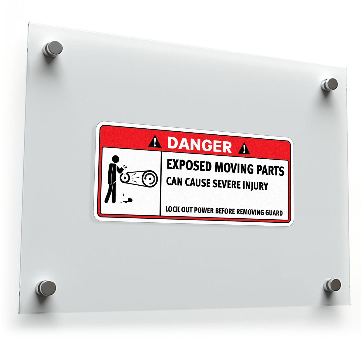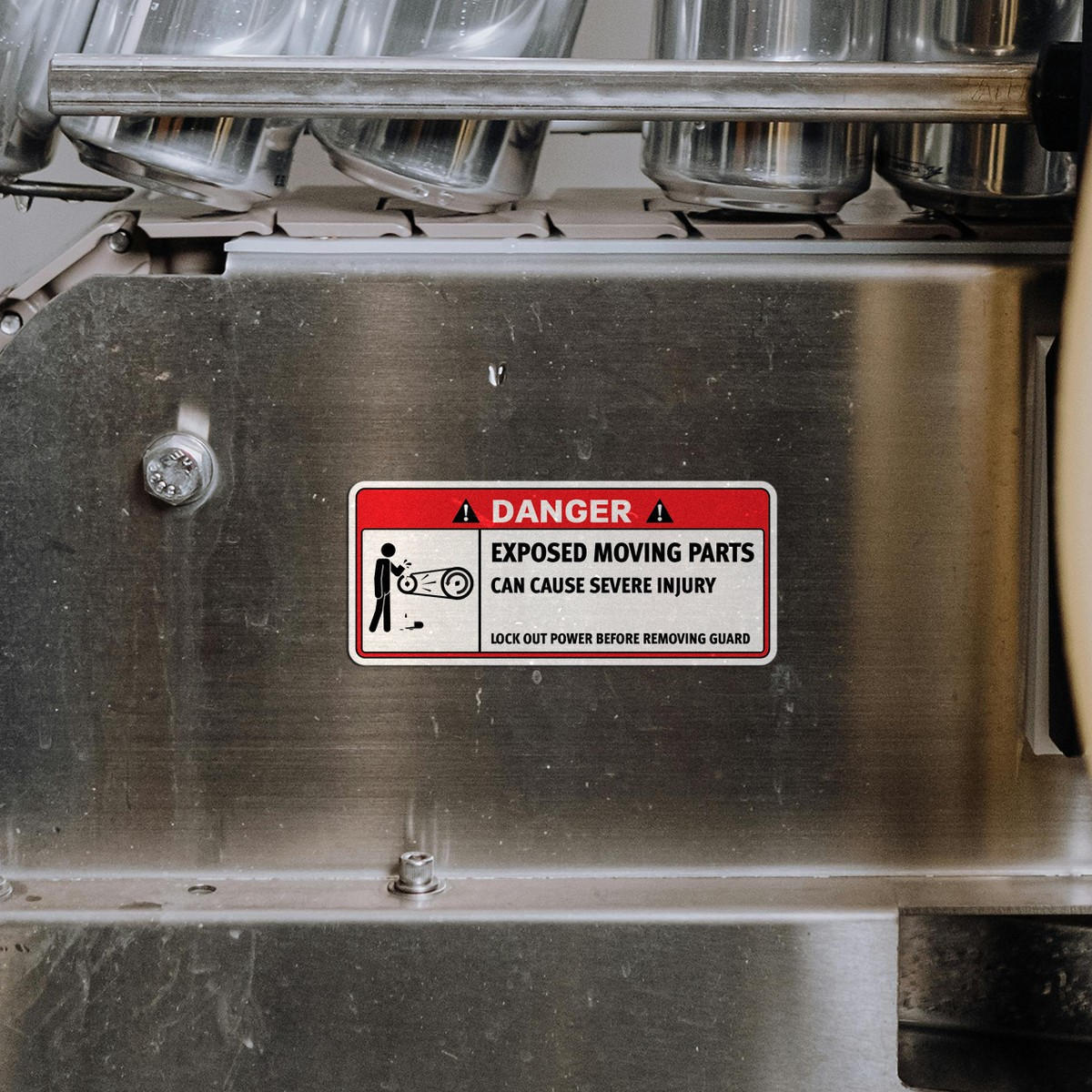 Promote safety and compliance in your industrial workspace with this durable “Danger Exposed Moving Parts” vinyl decal. Featuring a clear warning message to prevent severe injury, this decal is perfect for marking hazardous machinery and equipment. Crafted from durable, weatherproof vinyl, this safety sticker is built to withstand tough industrial conditions while maintaining high visibility. Its removable design allows for easy application and repositioning without leaving sticky residue behind. This decal also includes a reminder to lock out power before removing guards, ensuring safety protocols are followed in the workplace. Available in multiple size options to fit your needs.