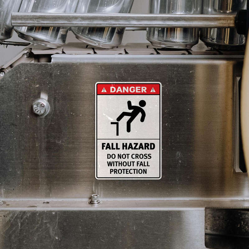 Promote safety in high-risk areas with this “Danger Fall Hazard” sticker, designed to remind personnel to use fall protection before crossing hazardous zones. With its bold red, black, and white colors, this decal captures attention and communicates a clear warning. Constructed from durable, weather-resistant materials, this sticker is suitable for both indoor and outdoor industrial settings, retaining its legibility over time. Available in multiple size options, it adheres easily to walls, doors, and safety barriers, helping to enforce safety protocols and prevent accidental falls.