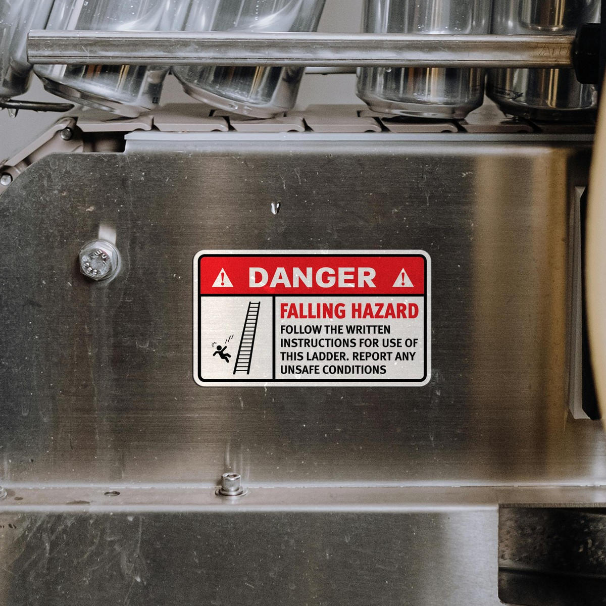 Ensure safety and compliance with this “Danger: Falling Hazard” warning sticker, designed to promote safe ladder use in workplaces and industrial areas. This durable vinyl decal provides easy-to-read instructions and warnings to prevent falls and injuries. Its weatherproof material ensures long-lasting effectiveness in both indoor and outdoor environments. Quick and easy to apply, this safety sticker adheres well to ladders, walls, or equipment without leaving sticky residue. Perfect for maintaining workplace safety standards, this decal is available in multiple sizes for diverse applications.