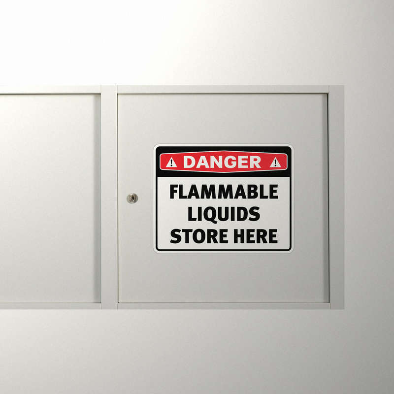 Danger Flammable Liquids Store Here Sticker – Durable Safety