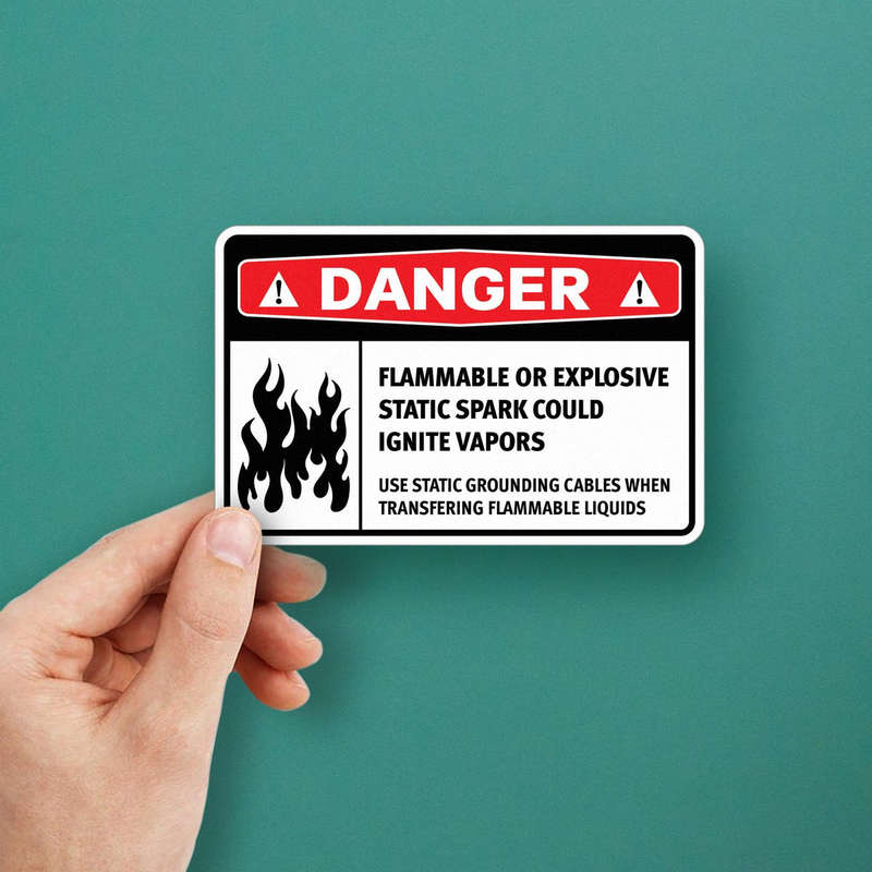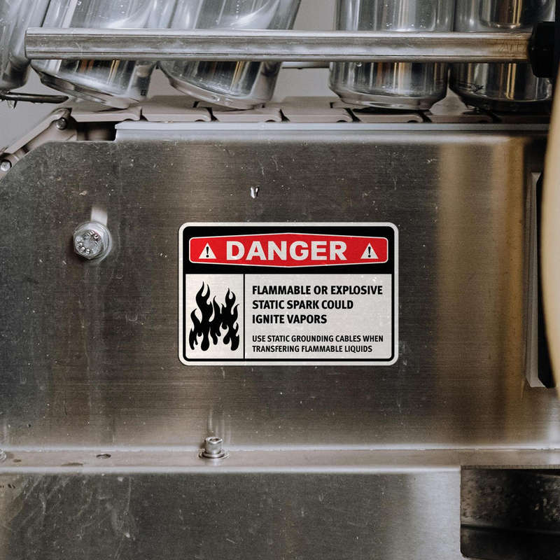 ⚡ Prevents Static Hazards: The sticker emphasizes the importance of using static grounding cables during the transfer of flammable liquids, reducing the risk of accidents. ⚡