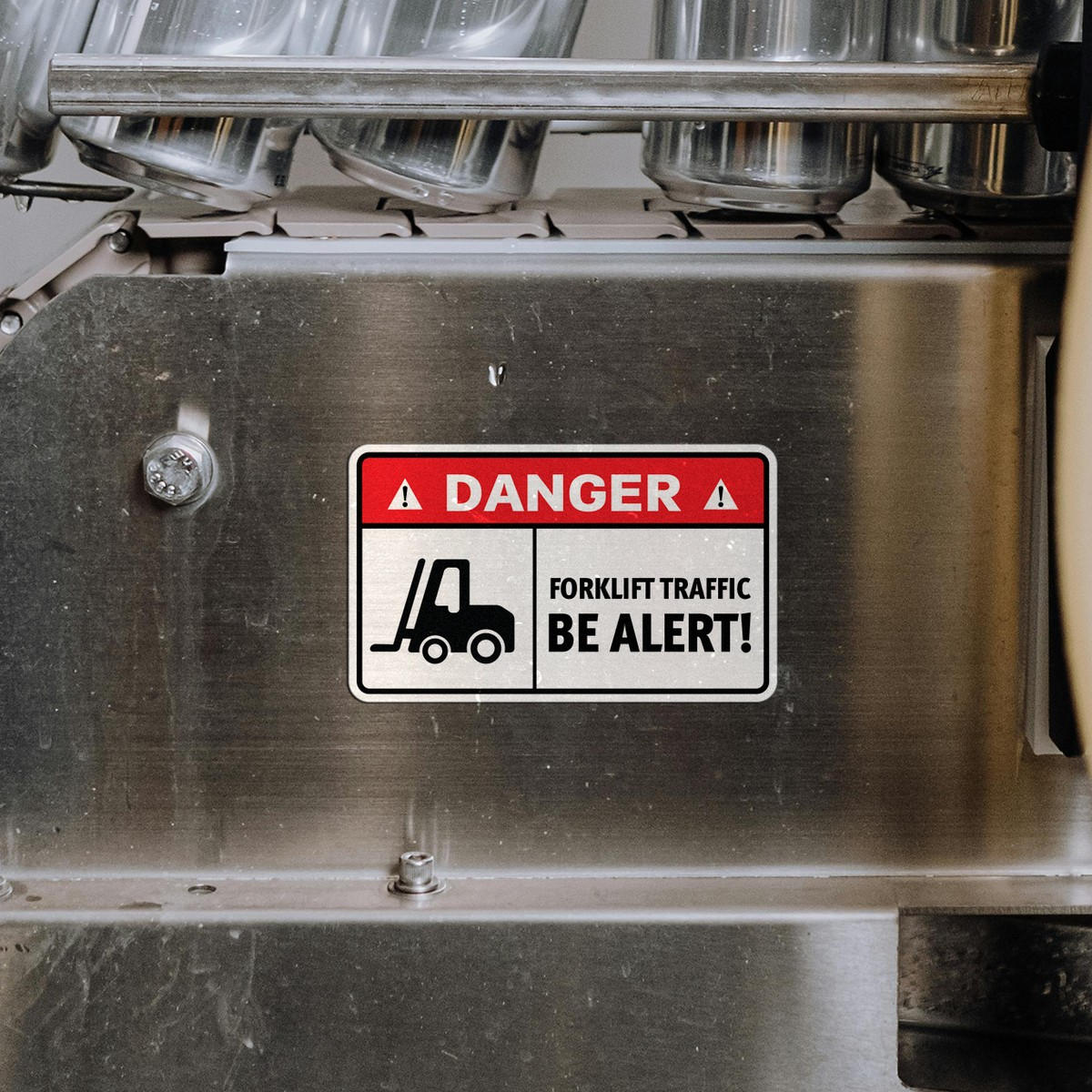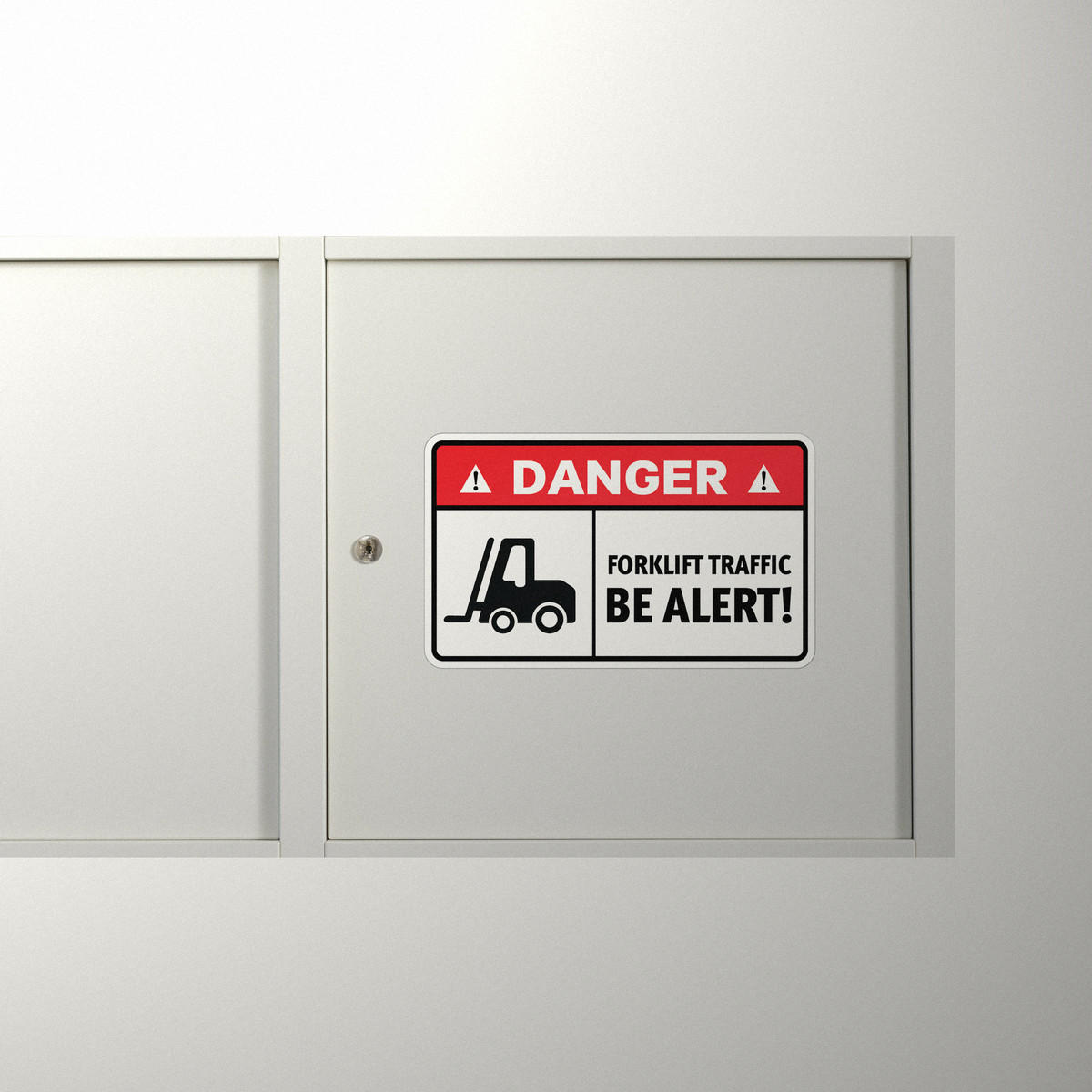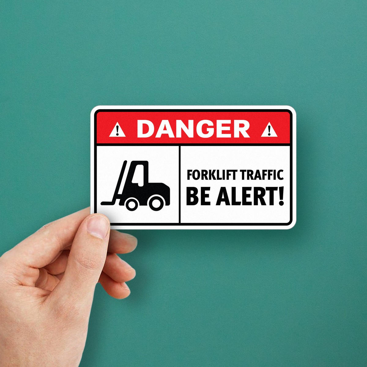 Enhance safety in industrial and warehouse areas with this high-visibility “Danger: Forklift Traffic Be Alert” sticker. Designed to provide a bold and clear warning in areas where forklift traffic is active, this durable vinyl decal promotes safety and helps prevent accidents. Its red, black, and white design ensures maximum visibility in busy environments, while its weatherproof and fade-resistant construction makes it suitable for both indoor and outdoor use. Easy to apply and remove, this sticker offers a reliable safety solution for any workspace. Available in multiple sizes to meet your needs.
