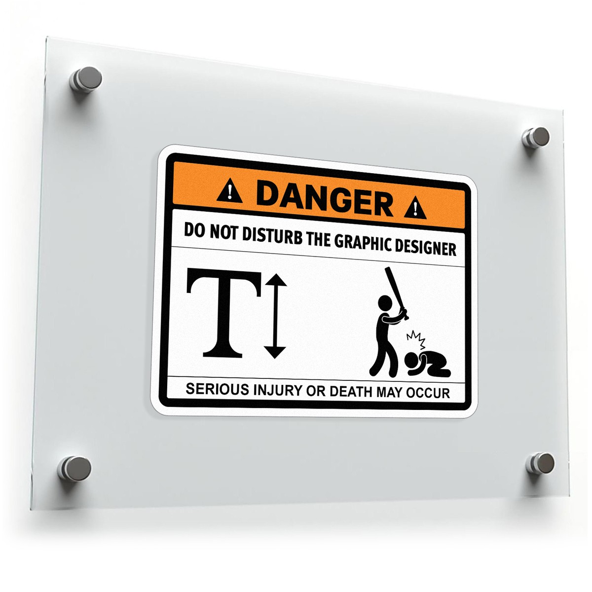 🎨 Bold and Eye-Catching Design: The striking orange and black design ensures visibility, making it a standout piece of humorous decor for creative professionals. 🎨