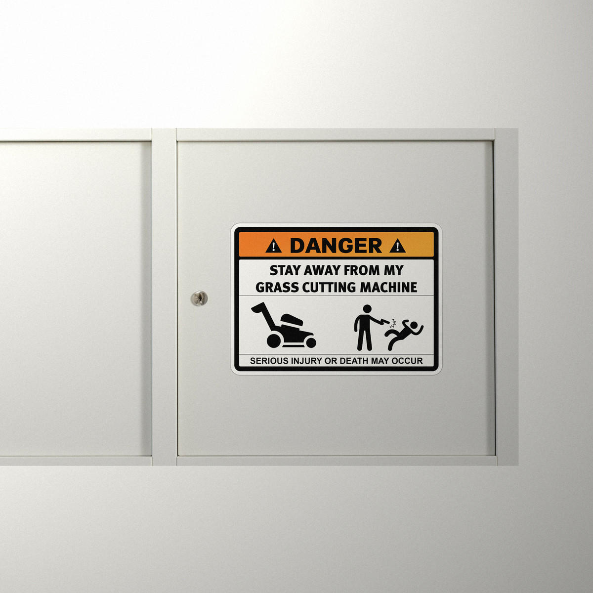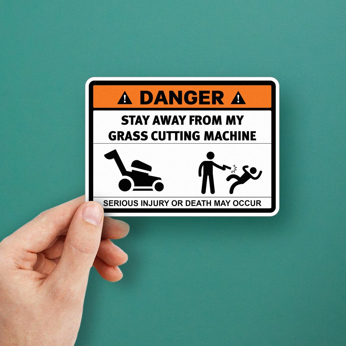 Danger Grass Cutting Machine Sticker ⚠️ Clear Grass Cutting Machine Warning: This bold safety sticker warns others to stay away from grass cutting machines, highlighting the risk of serious injury or death in mower zones. ⚠️