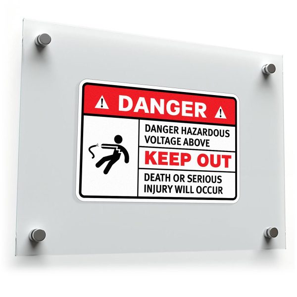 Danger Hazardous Voltage Keep Out Vinyl Sticker ⚠️ Critical Hazard Warning: This vinyl sticker boldly states “Danger: Hazardous Voltage Above – Keep Out – Death or Serious Injury Will Occur,” delivering clear and urgent safety instructions for hazardous areas. ⚠️
