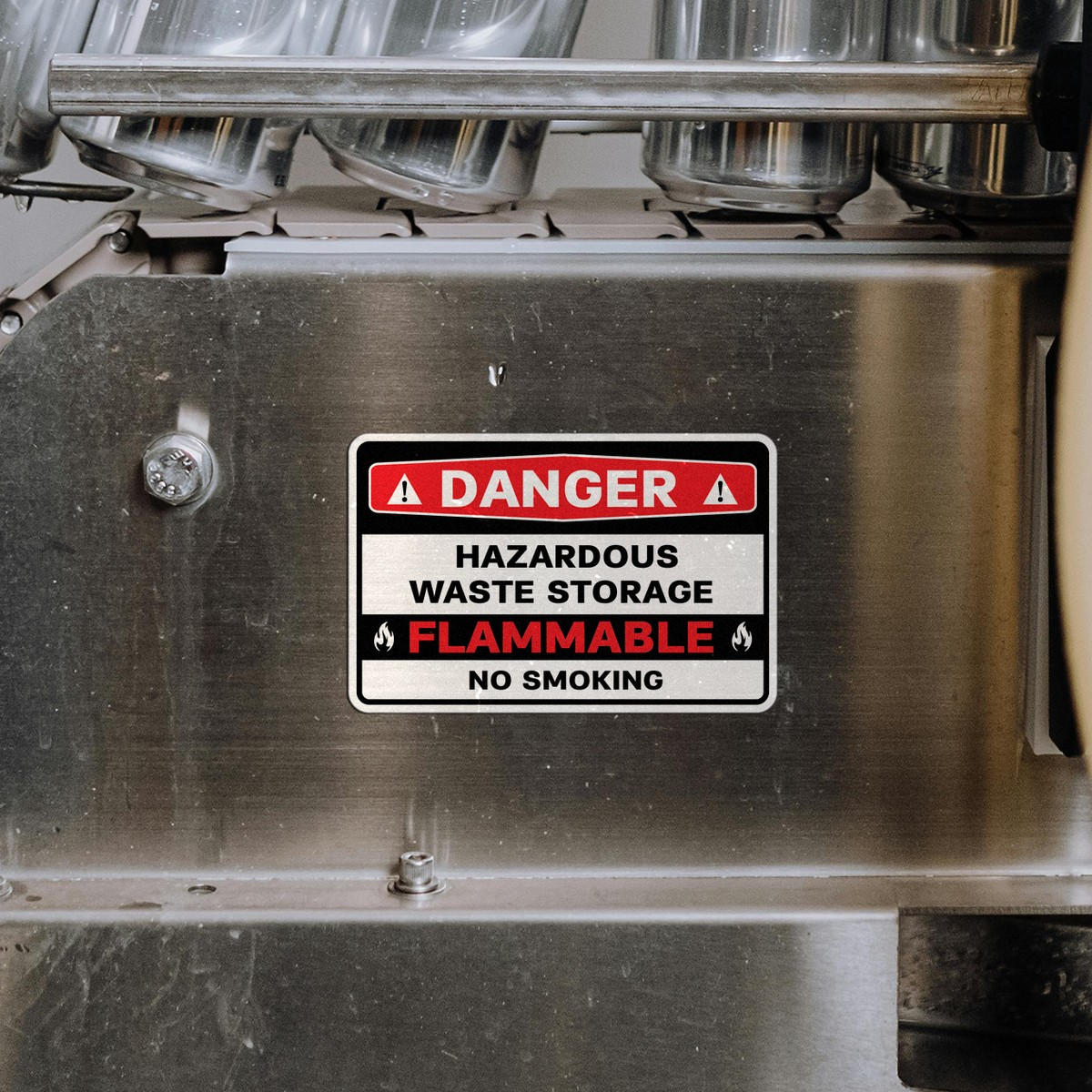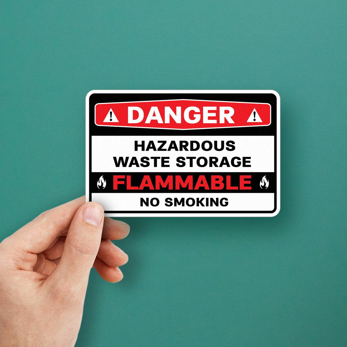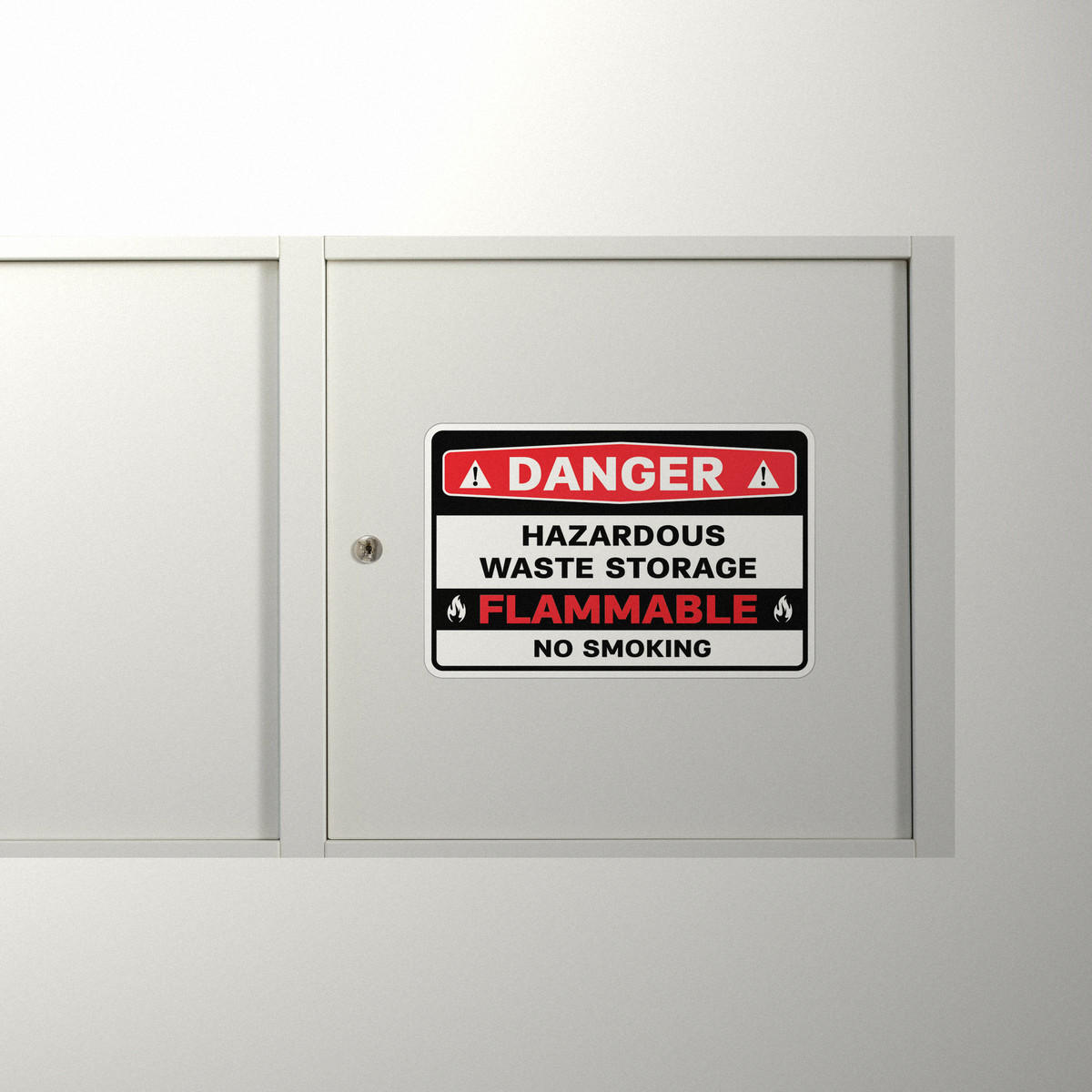 Enhance safety and compliance in hazardous environments with this “DANGER: Hazardous Waste Storage, Flammable, No Smoking” vinyl safety sign. Designed for industrial and high-risk settings, such as factories, chemical plants, and labs, this sign ensures personnel are aware of the dangers and prohibited actions in areas where flammable materials are stored. Made from durable, weather-resistant vinyl, it is perfect for both indoor and outdoor use, retaining visibility in various conditions. Easy to apply and remove, this sign is an essential tool for maintaining safety standards and preventing accidents.