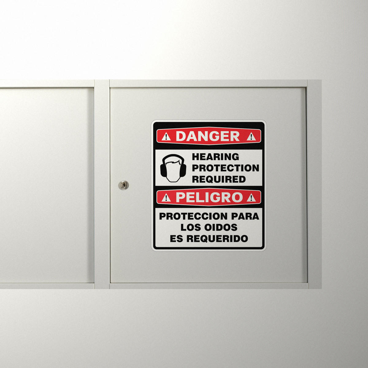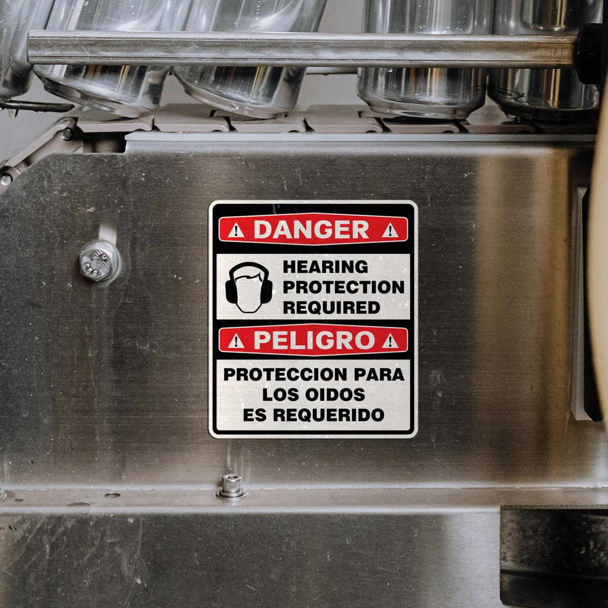 Ensure worker safety and compliance with this bilingual “Danger Hearing Protection Required” vinyl sticker. Featuring clear warnings in both English and Spanish, this decal ensures that critical safety information is accessible to a diverse workforce. The bold red, black, and white design, along with clear iconography, makes this sticker highly visible in industrial environments. Made from durable vinyl, it withstands tough conditions and can be easily applied and removed without leaving any residue. Available in multiple size options, this sticker is essential for maintaining safety standards in noisy workplaces.