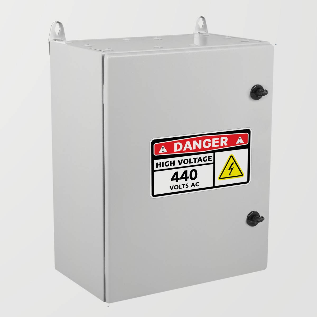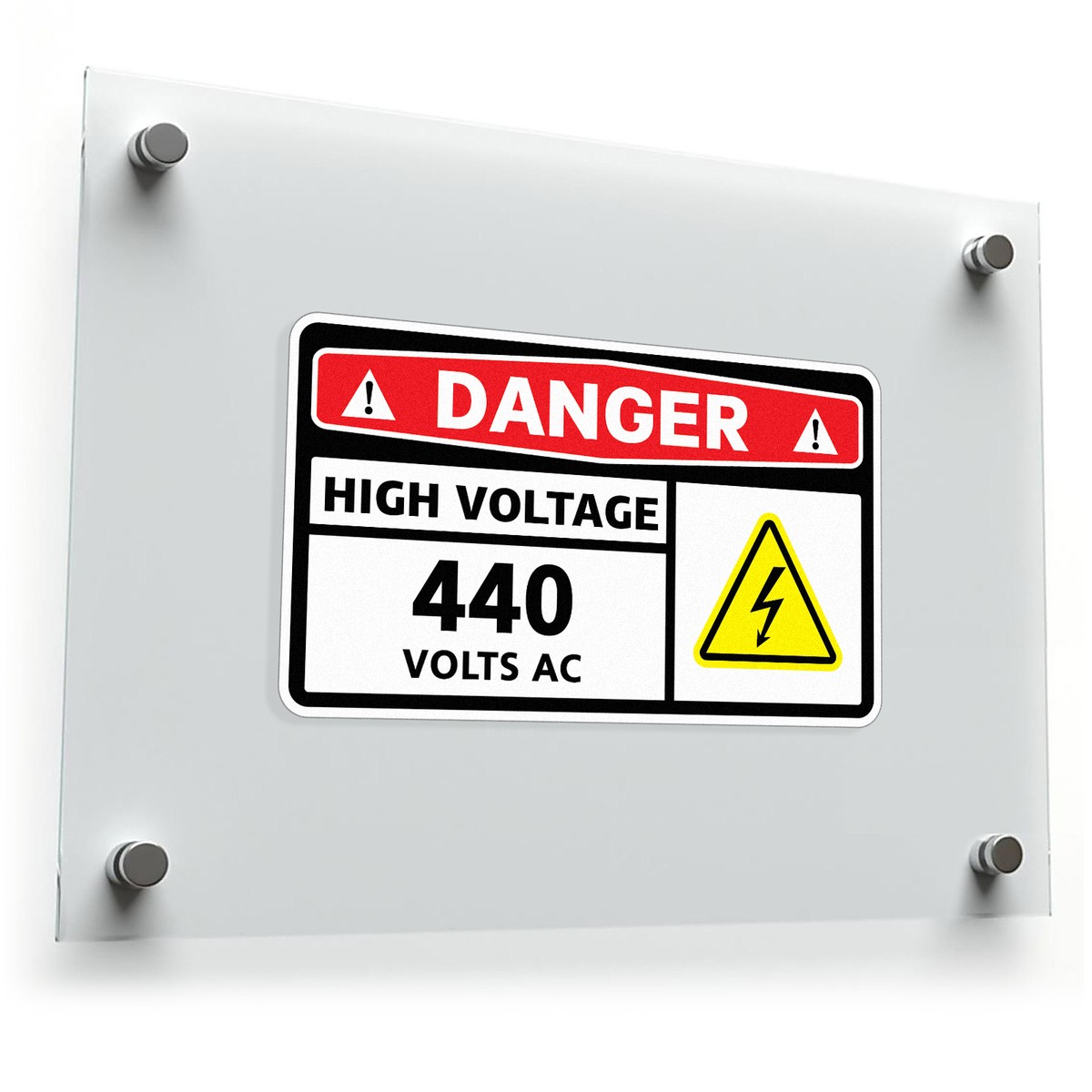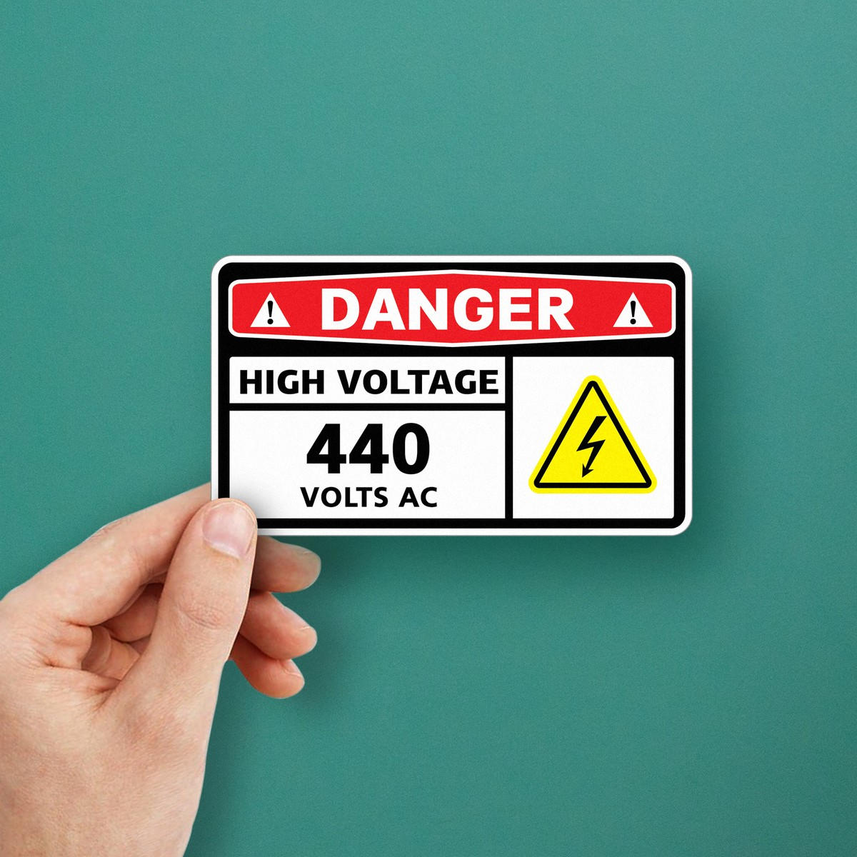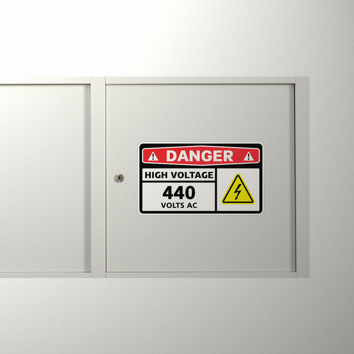 Ensure workplace safety with this “Danger: High Voltage 440 Volts” sticker. Perfect for industrial settings and high-risk environments, this durable vinyl decal warns of electrical hazards, helping to prevent accidents. The weatherproof construction ensures long-lasting use in both indoor and outdoor environments. Its bold design makes it highly visible, and the easy peel-and-stick application allows for simple and secure placement on electrical equipment or walls. Protect your workers and mark hazardous areas effectively with this high-voltage warning sticker.