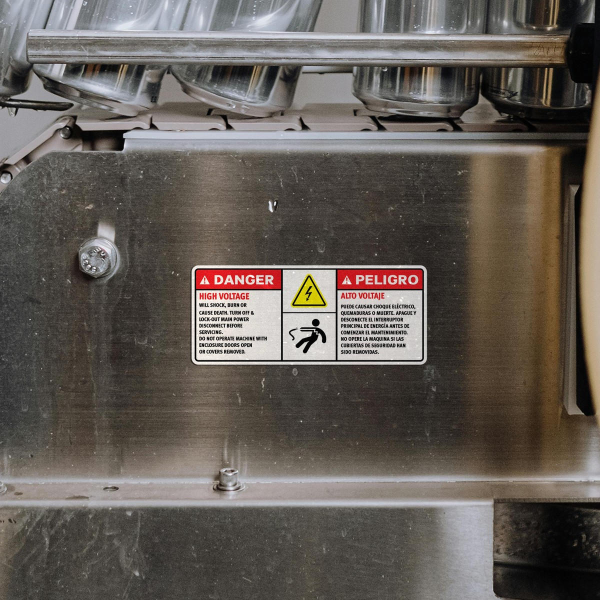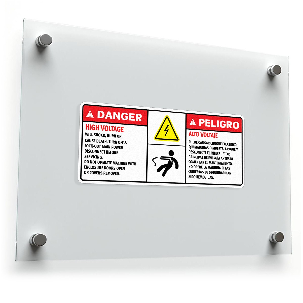🏭 Bilingual Safety Notice: Featuring both English and Spanish warnings, this sticker ensures that all workers, regardless of language, are informed about the dangers of high voltage in the area. 🏭