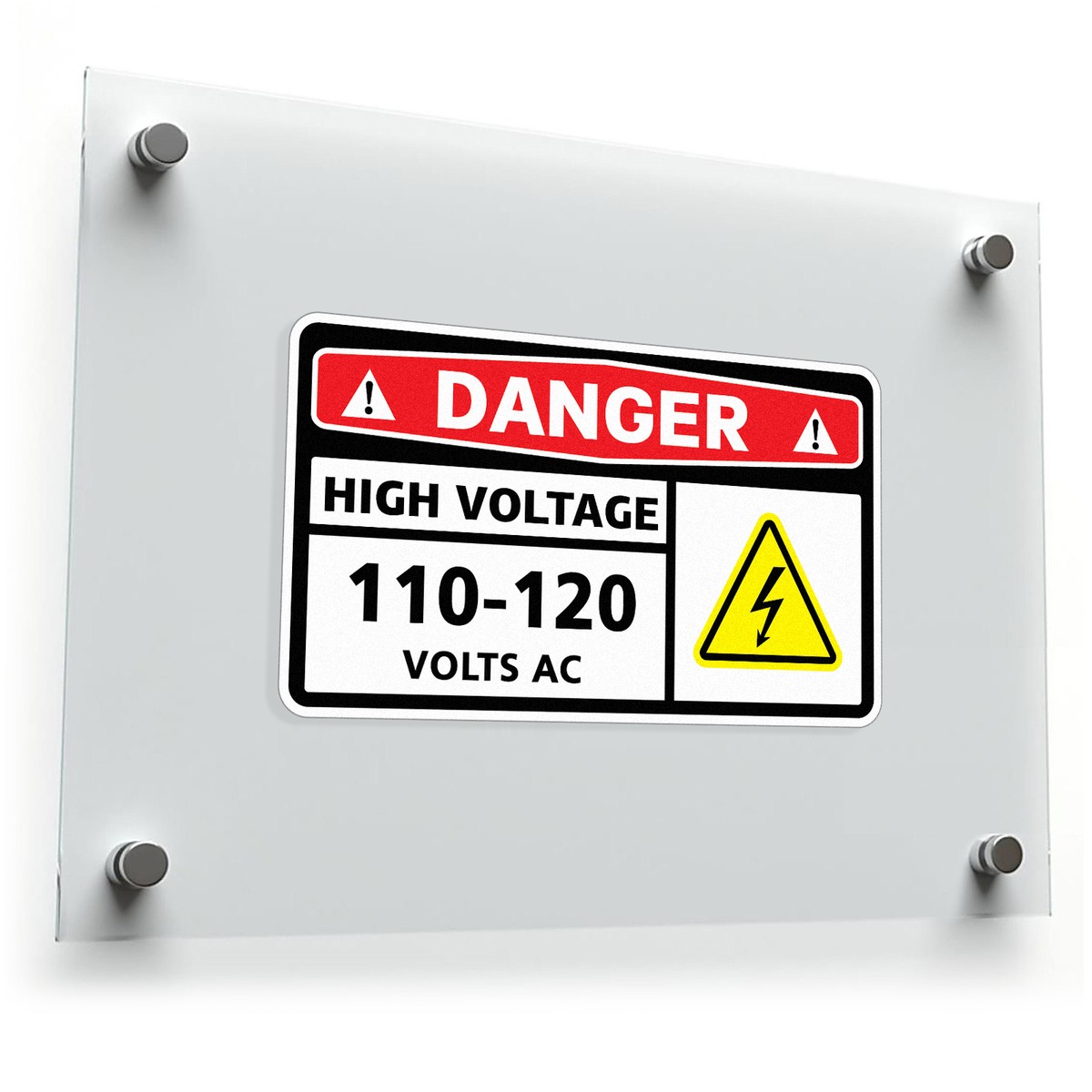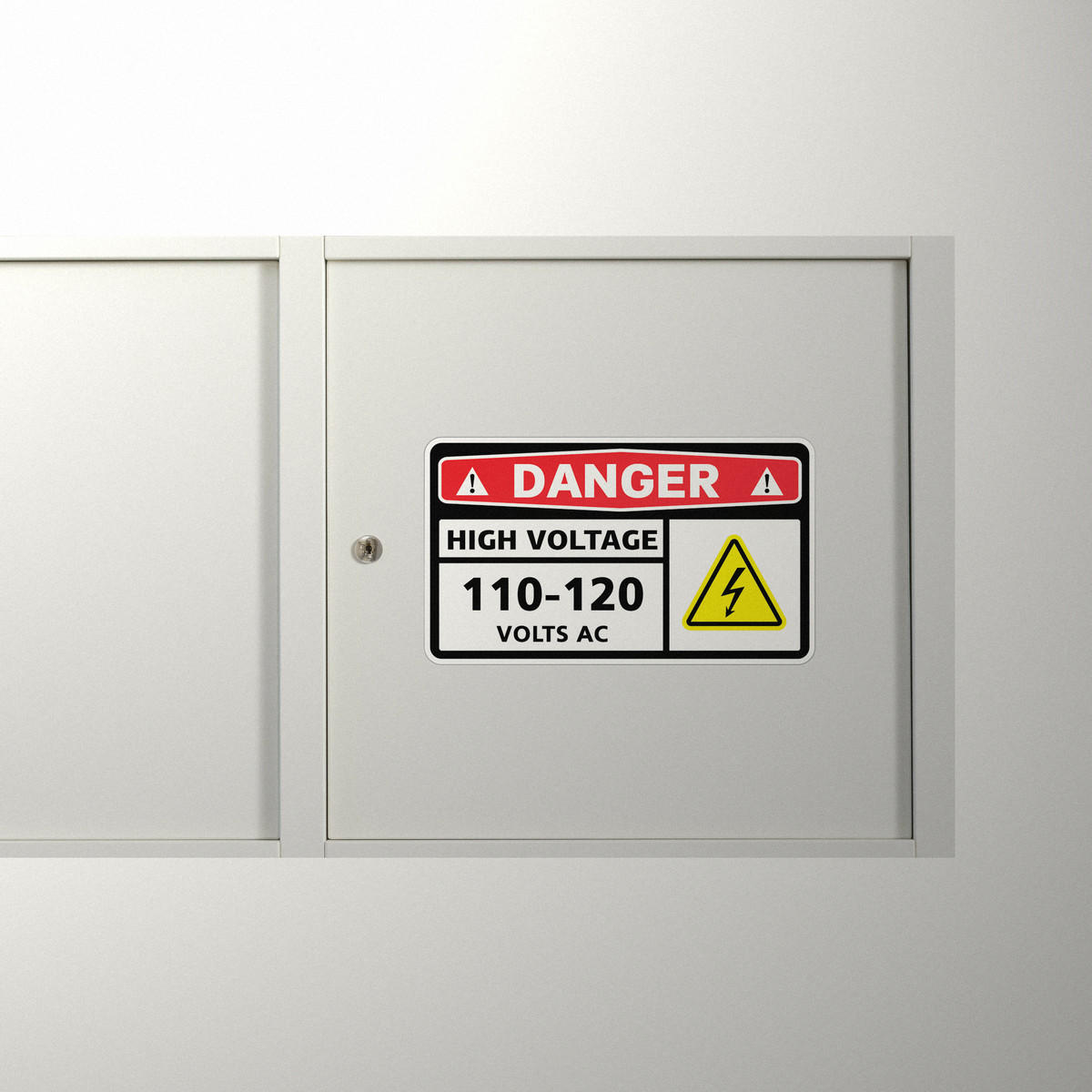 Ensure workplace safety with this “Danger High Voltage” vinyl sticker, designed to provide a clear warning for areas with 110-120 Volts AC. Crafted from durable, waterproof vinyl, this decal is perfect for both indoor and outdoor use, resisting wear and tear in tough industrial environments. The easy-to-apply design adheres to metal, plastic, and other surfaces without leaving residue. Available in multiple size options, this sticker helps prevent accidents and promotes compliance with safety standards in any workplace or industrial setting.