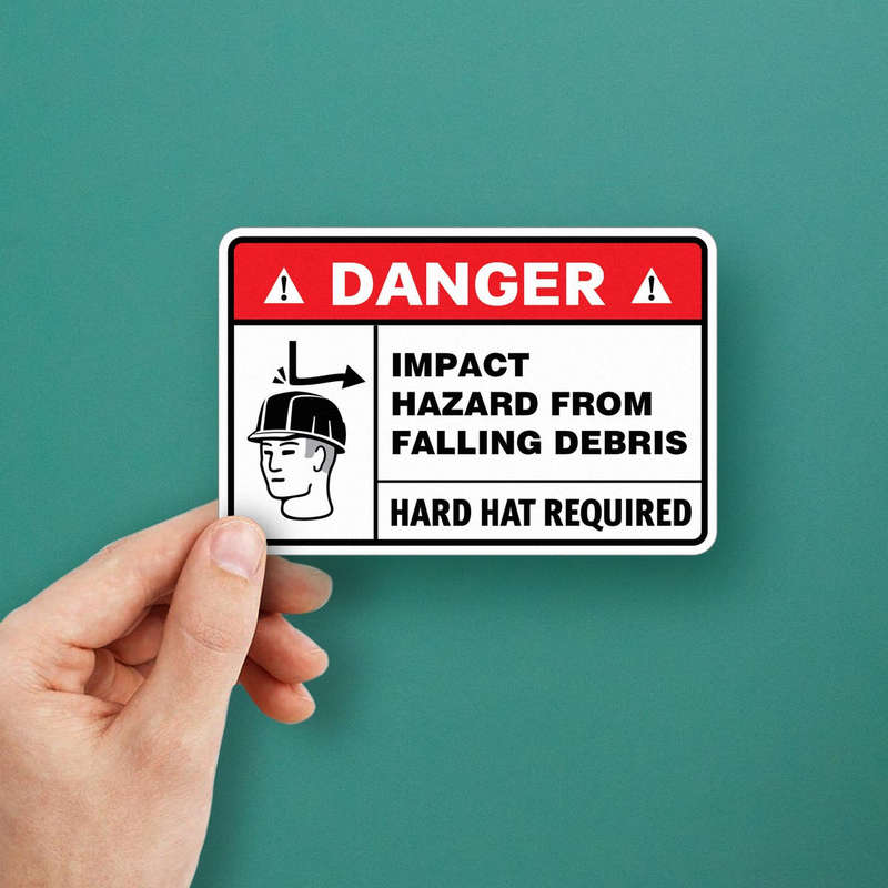 Danger Impact Hazard Sticker – Hard Hat Required Safety