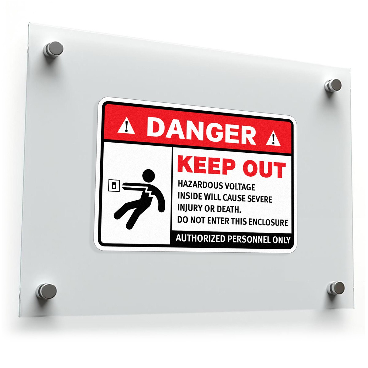 🚷 Clear ‘Keep Out’ Instruction: Featuring bold red and black text with universal safety icons, this sticker effectively communicates the severity of the hazard, helping to prevent severe injuries or fatalities. 🚷